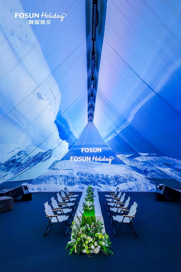 复星展台上,"光影织梦,山海无界"主题巧妙地将帐篷、露营与高端度假风元素有机融合,营造出轻松愉悦、激发探索的沉浸式氛围。与传统静态展示不同,观众步入帐篷内,即可沉浸式观影,快速体验"一秒进入度假"的氛围,感受品牌倡导的高品质度假意境。