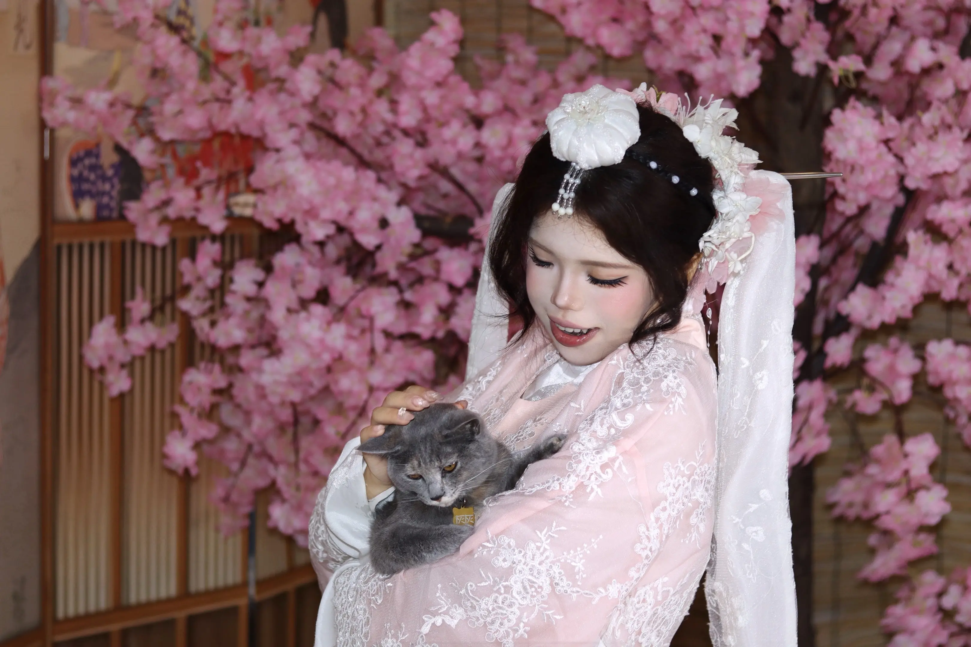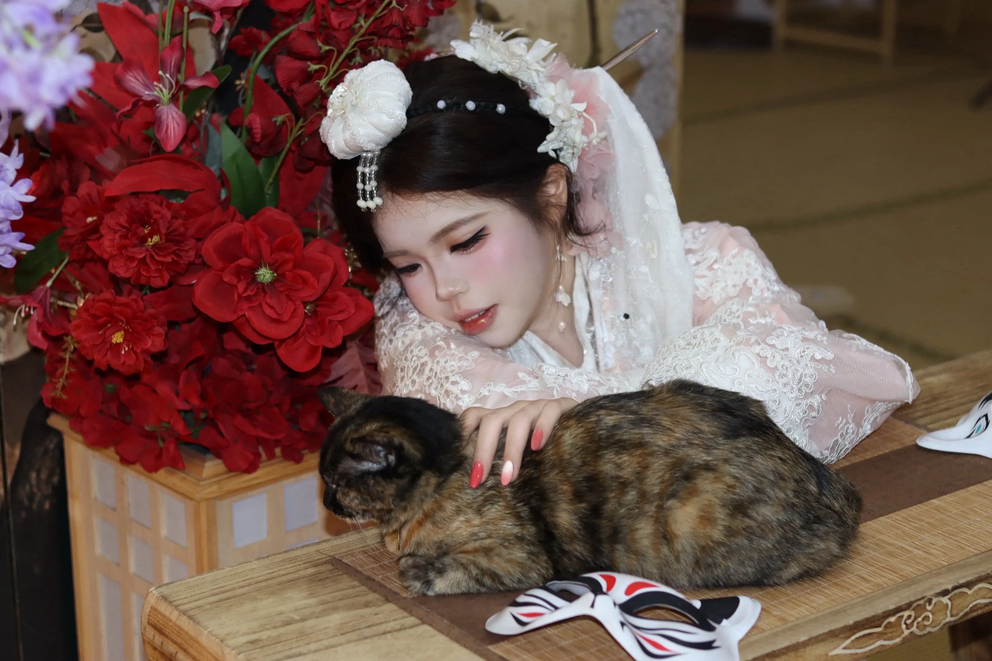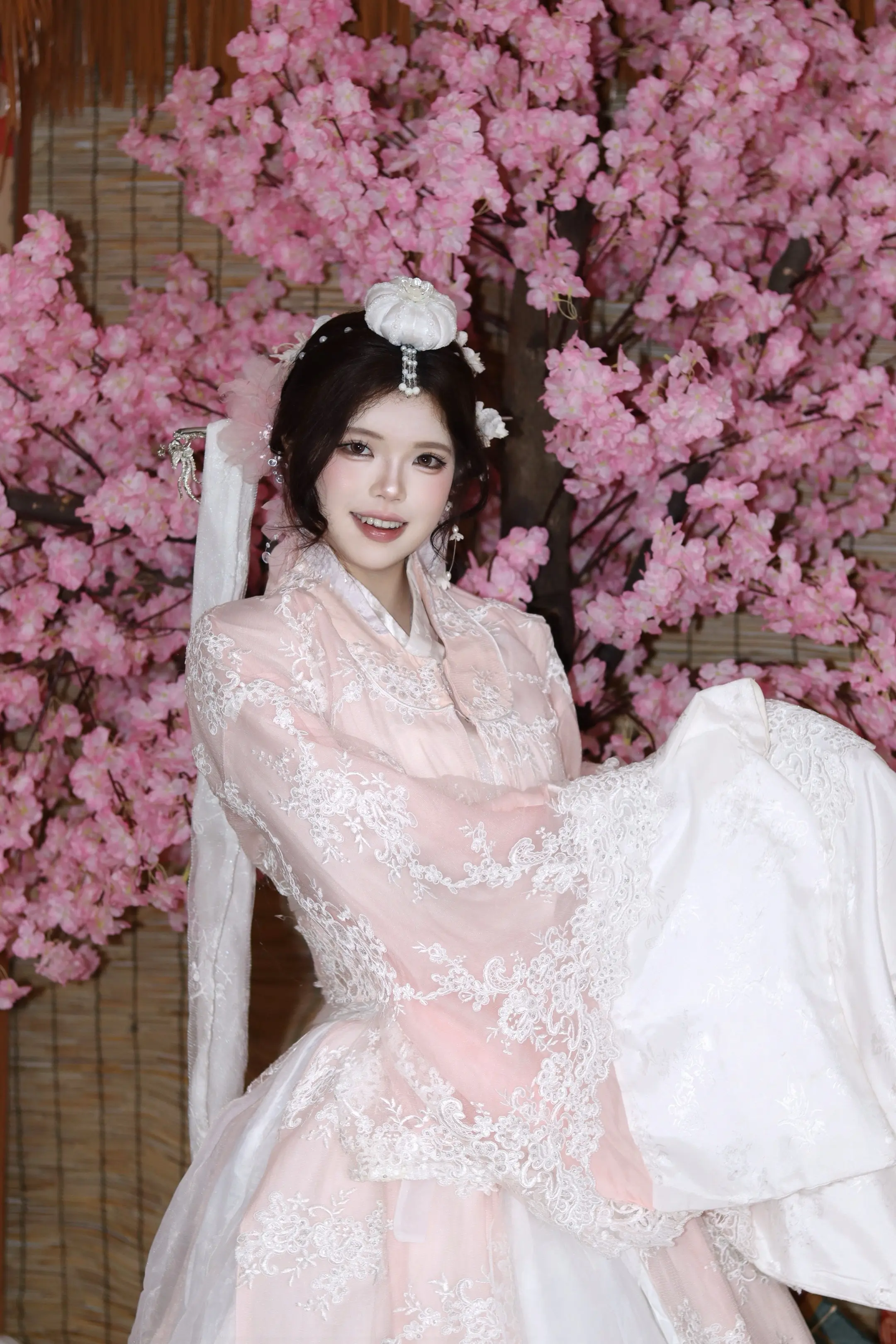 桃花开得美人归。