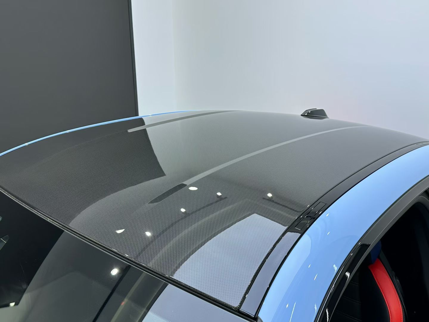 选了碳纤维车顶,三色座椅,抬头显示(选配4万左右),外观是赞德福特蓝