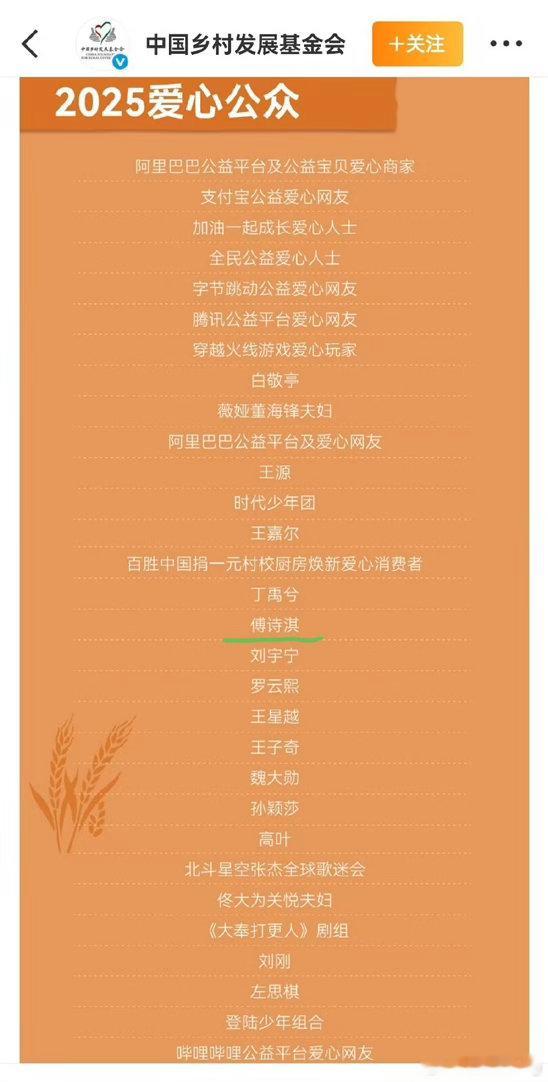 中国乡村发展基金会公布的乡村振兴事业答谢名单有傅诗淇诶…骂是成毅挨的 表扬是傅诗