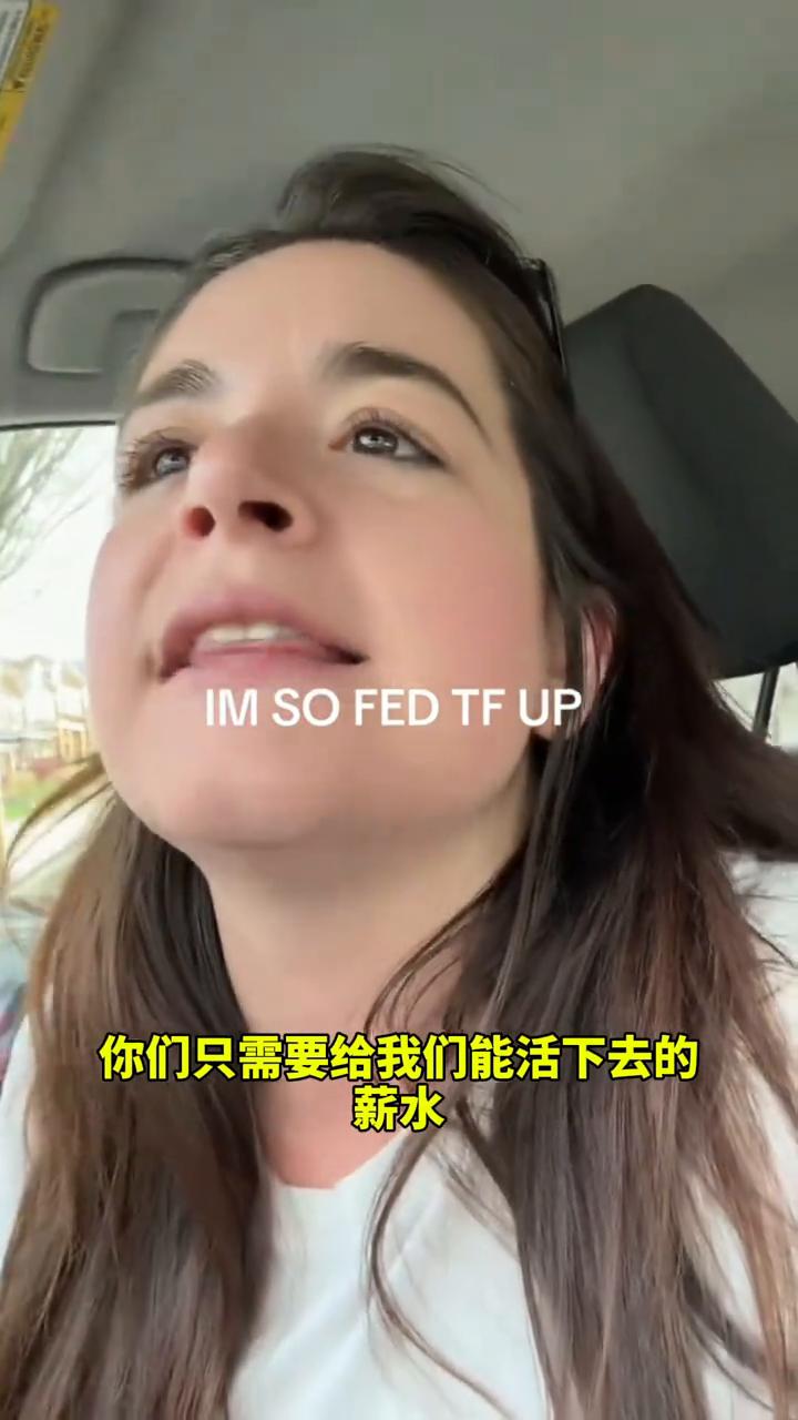 我的房租一个月才1500美元,车贷一个月600美元,保险200美元,我甚至连医保都没有,我连医保都负担不起,我的孩子只能靠儿童医保计划。他们到底想让我们怎么办?我真的受够了,我现在憋屈得就像那个烧了仓库的人,你们只需要给我们能活下去的薪水,只需要让生活成本变得可以负担。