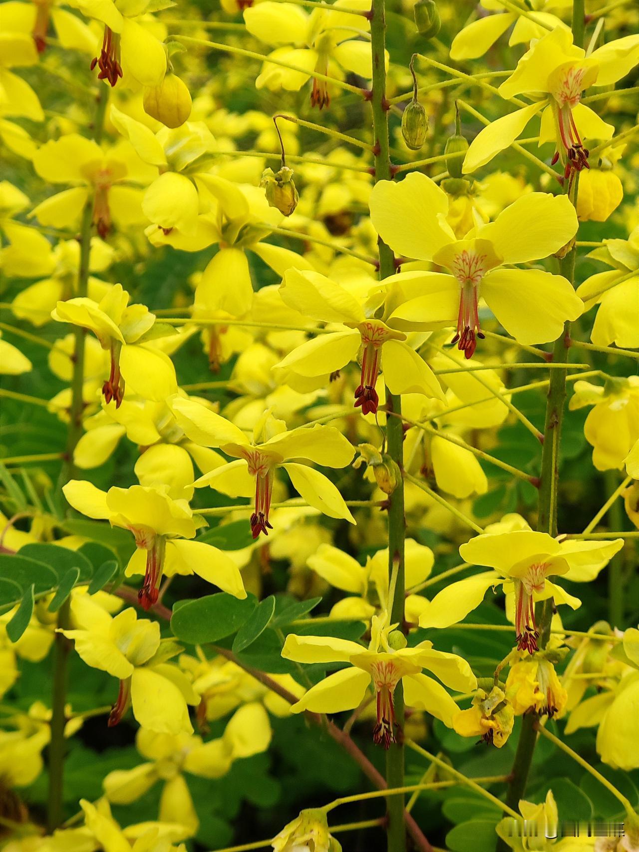 暮春时节,偶遇云实花开,金黄铺满山野,繁花簇拥,群蜂忙碌,一眼就治愈了所有浮躁。