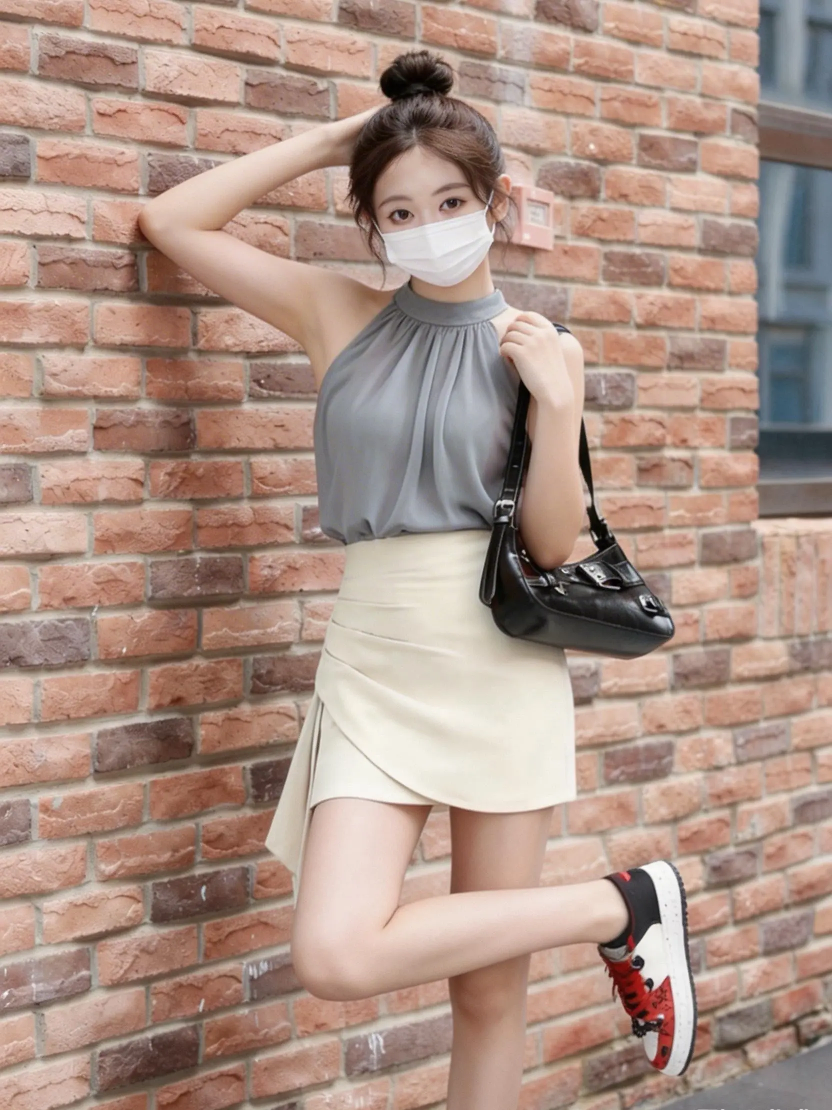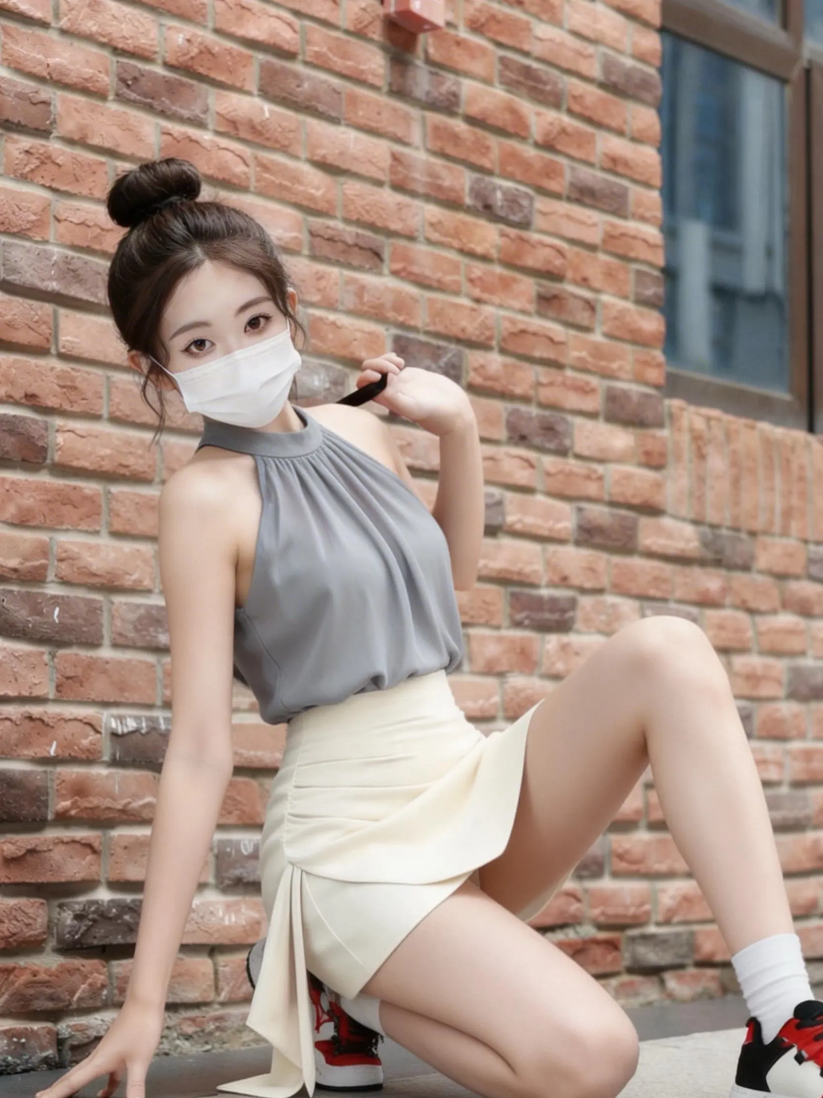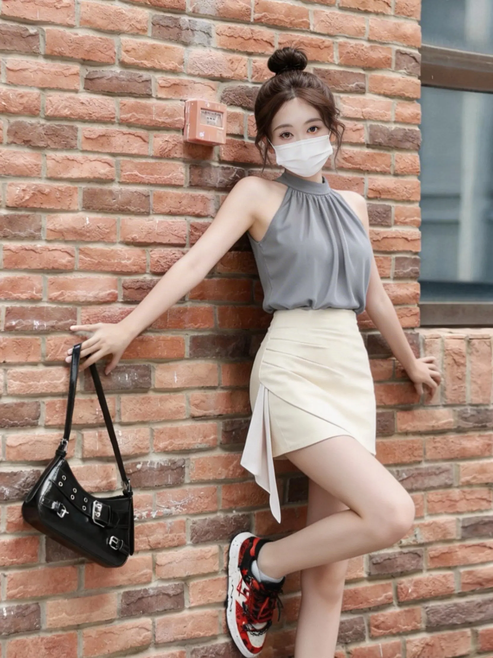 甜酷天花板!这套挂脖+裙裤也太显腿长了吧。谁懂啊!这件灰挂脖上衣+奶白...