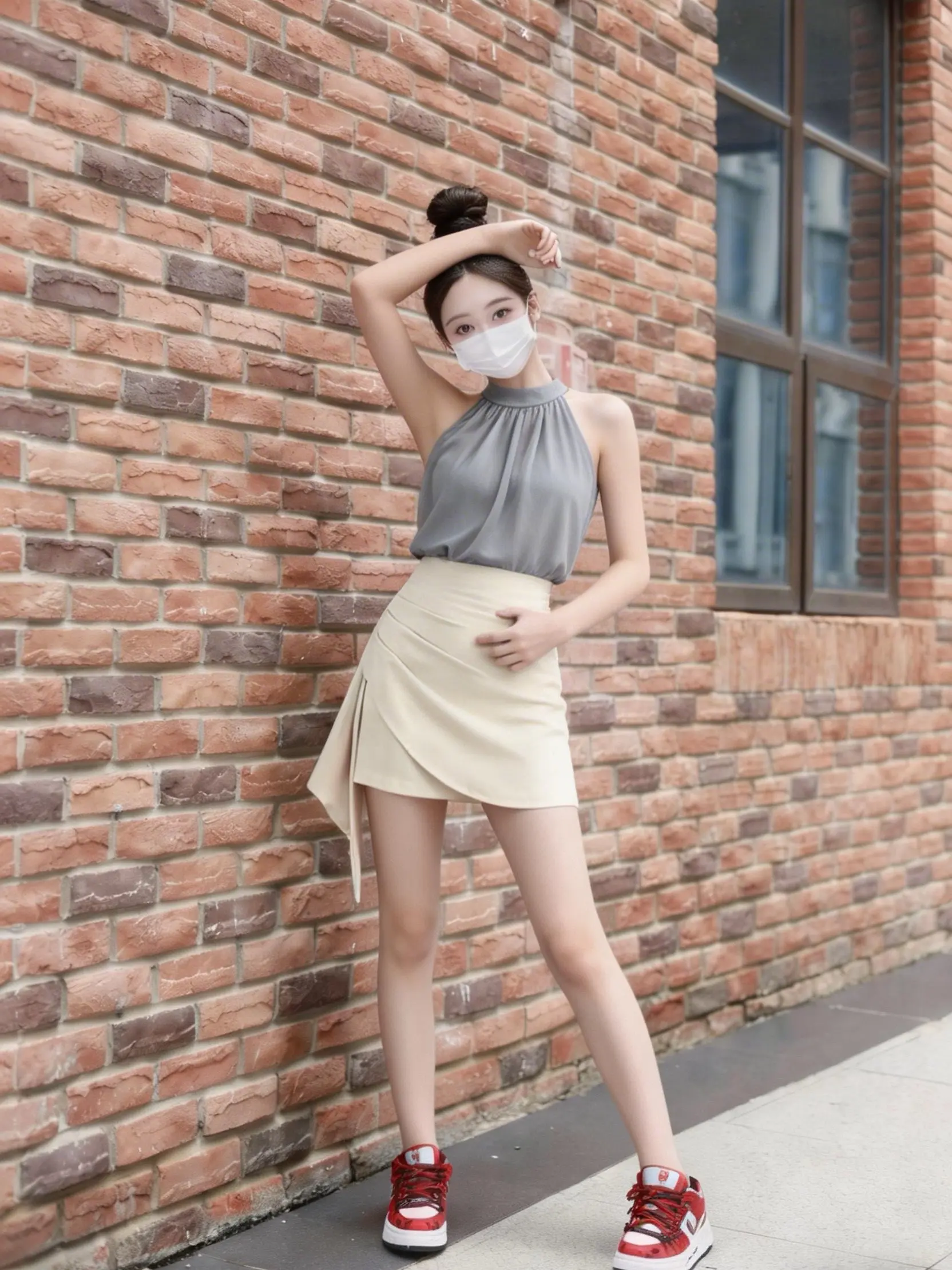 甜酷天花板!这套挂脖+裙裤也太显腿长了吧。谁懂啊!这件灰挂脖上衣+奶白裙裤真的太绝了!