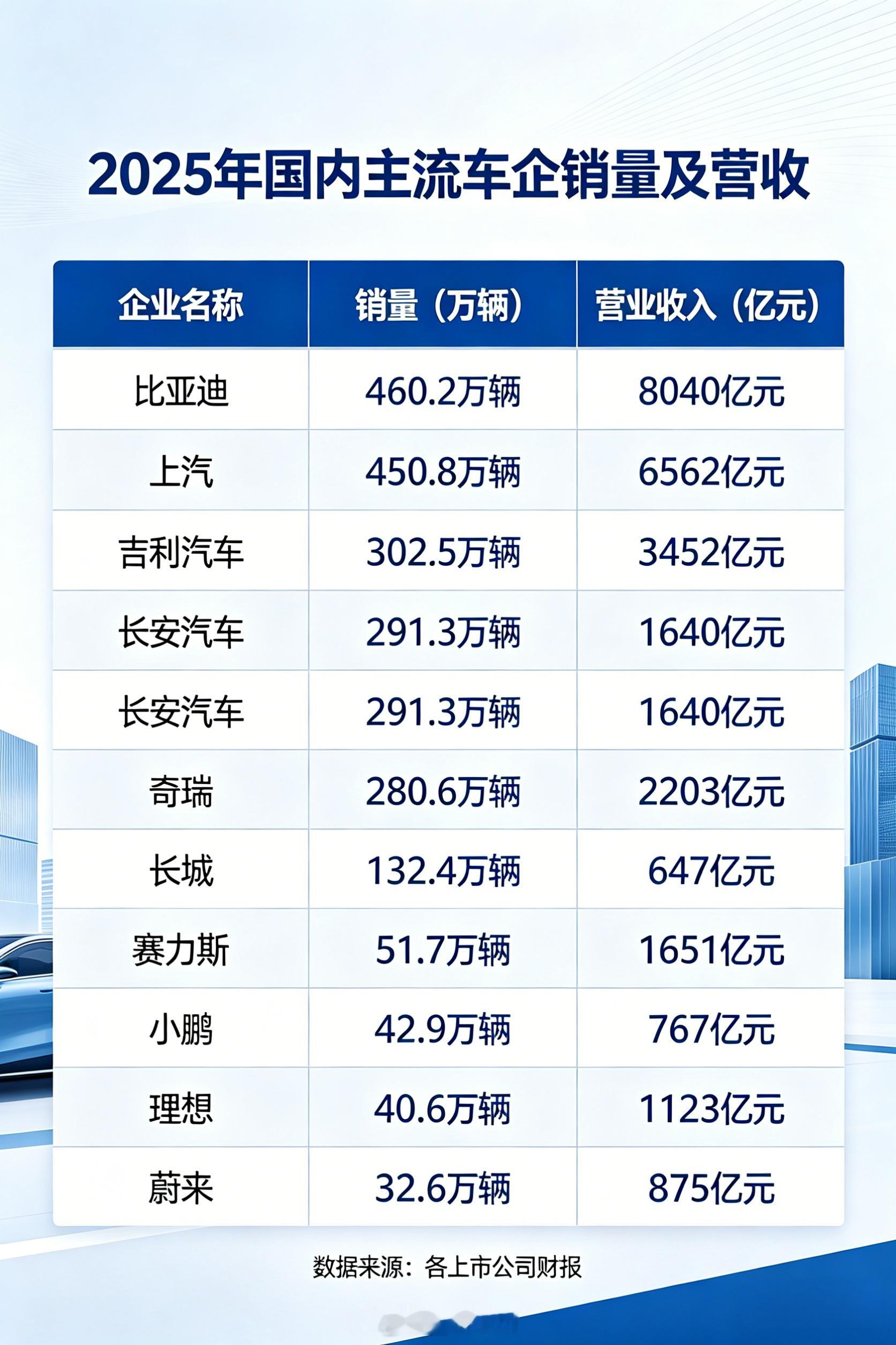 2025 国内车企业绩盘点:比亚迪营收 8040 亿、销量 460.2 万、净利 326 亿、研发 634 亿,四项核心指标均国内领跑。中国车企首次打破欧美日长期垄断,比亚迪跻身全球车企前五,吉利同时入前十,产业格局质变