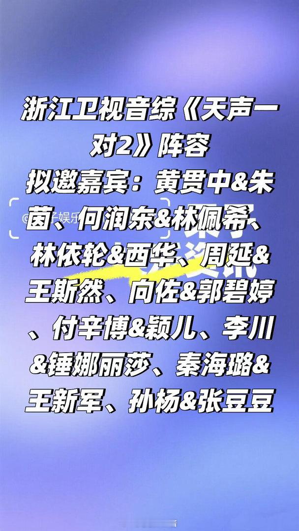浙江卫视音综《天声一对2》阵容🈶