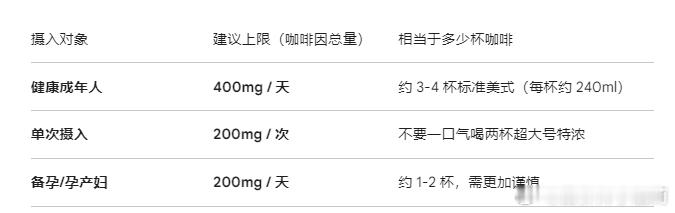 每天喝多少算“安全区”?根据欧洲食品安全局(EFSA)和美国 FDA 的建议,健康成年人的摄入标准如下图2