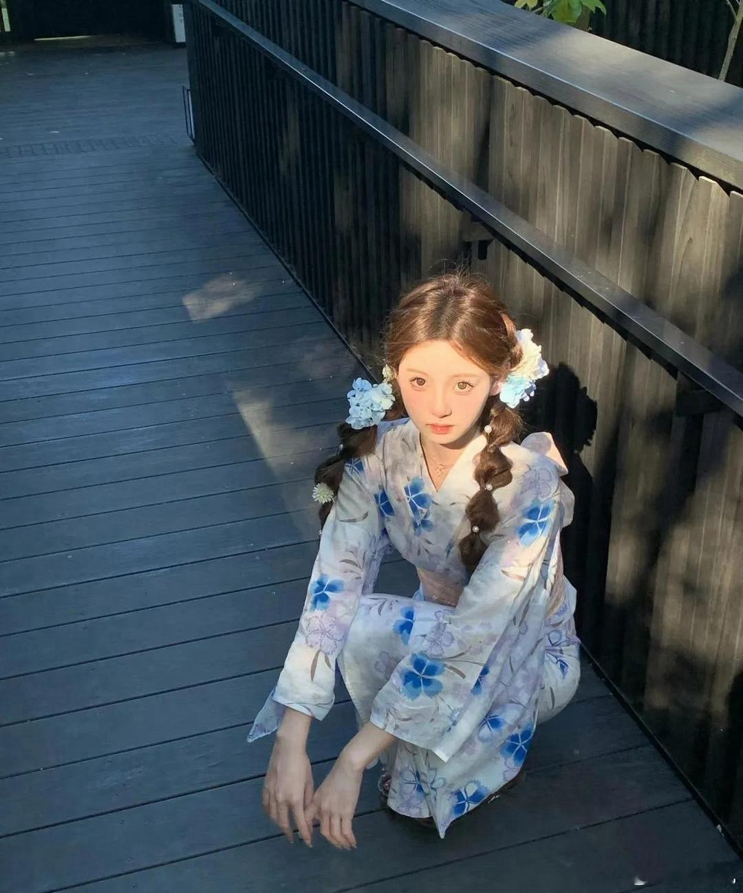 王思聪的女友懒懒最近在日本穿上了和服,看起来超级可爱,让人想保护她