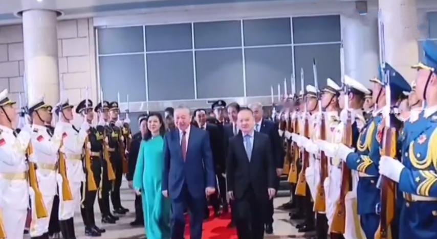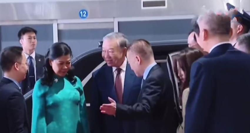 另外苏林这次还特意坐高铁去广西参观,而不是去别的地方,从地图我们也可以得知,广西和越南相邻,而越南正在将要建设的高铁也要经过广西,因此广西更是是中越经贸合作、人文交流的前沿阵地。所以这次苏林此行到访广西不仅仅是体验高铁,旨在进一步深化边境经贸往来、产业协同、跨境物流与文旅合作,推动两国优势互补、互利共赢。这不仅有利于夯实双边友好的民间基础,也能助力中国 — 东盟合作提质升级,为区域稳定与发展注入新动能。这次陪同苏林的还有他的夫人吴芳璃,吴芳璃还穿越南奥黛长裙亮相,一身湖泊绿的长裙非常优雅精致。