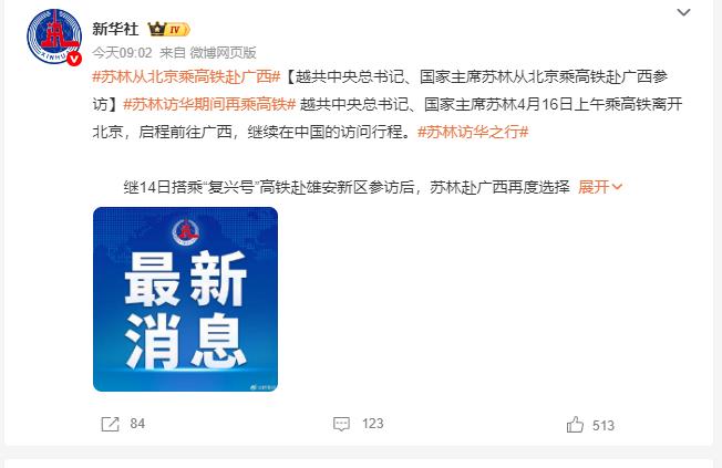 4月16日,苏林继续在北京访问,随后他和夫人又要去广西参观了,值得一提的是广西离北京这么远按理说应该坐飞机,不仅快还节省时间,可是苏林和夫人这次没有坐飞机,而是选择坐高铁过去引起不少网友的围观,很多人也评价称看来苏林真的喜欢上我们的高铁了。记得苏林第一天抵达北京的时候就是乘坐高铁到雄安新区的。