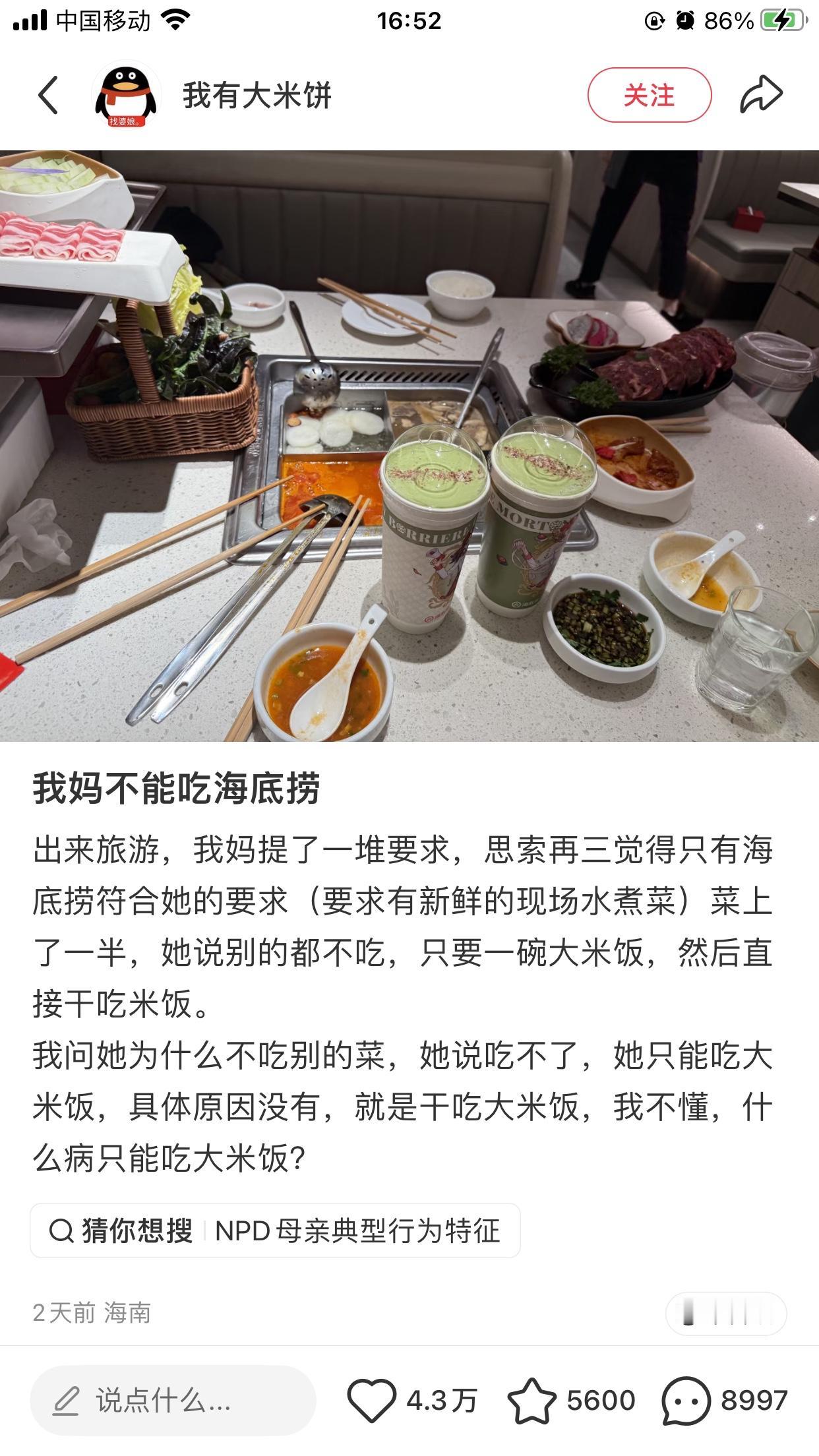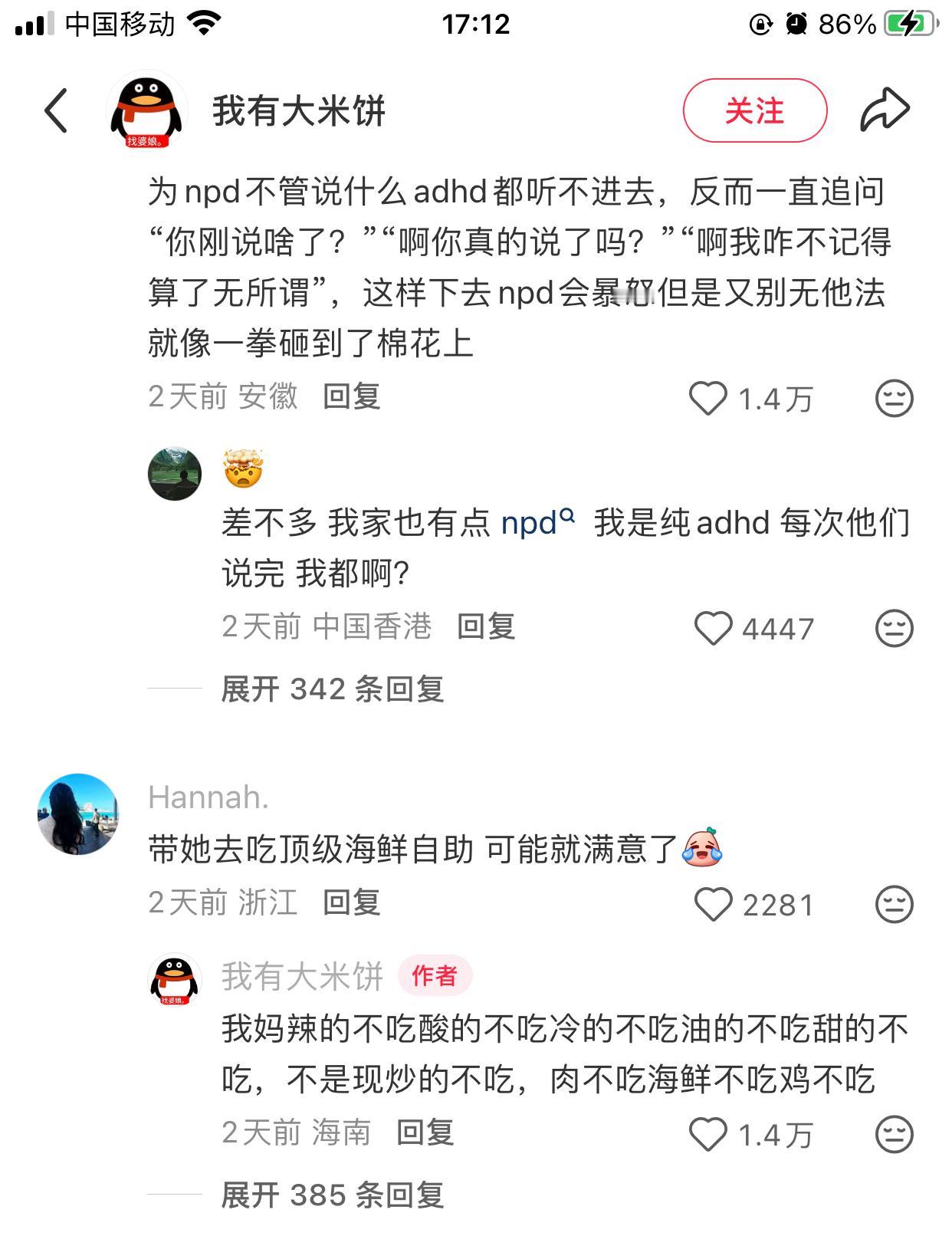 帖子发出后,迅速引发全网热议,上万条评论里,无数网友分享了自己类似的遭遇,有人说“我妈也是这样,带她旅游全程抱怨,最后还怪我安排不好”,有人说“NPD父母最可怕的就是,你做什么都是错的,他们永远是受害者”,还有人科普,NPD即自恋型人格障碍,这类父母以自我为中心,缺乏共情能力,习惯通过情绪勒索操控子女,将子女的付出视为理所当然。