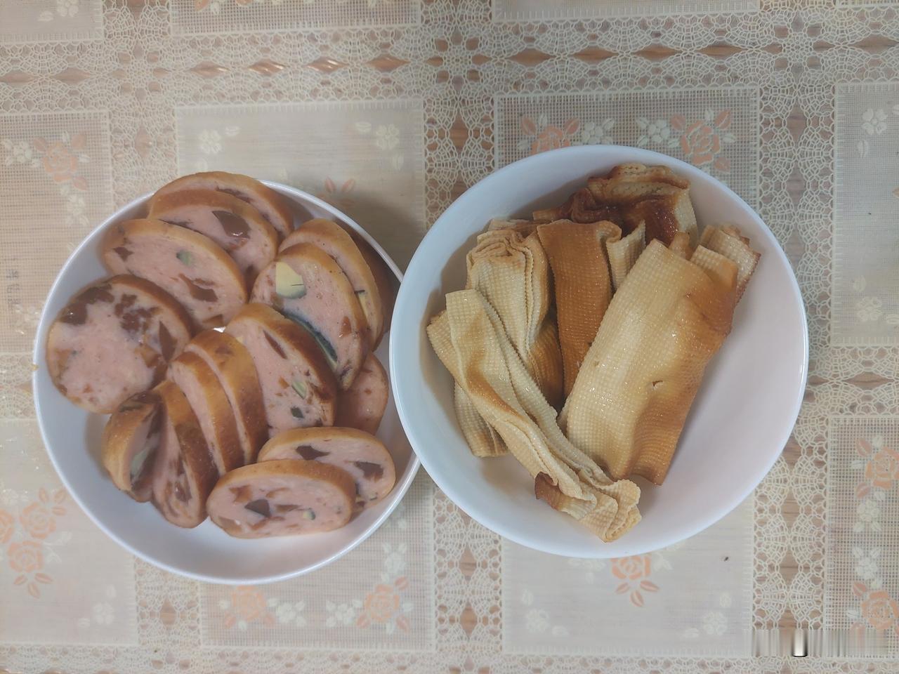 昨天晚上买了韩师傅的松花肠和豆腐卷。
