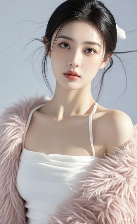 山间少女倚栏杆,笑语盈盈映芳颜。