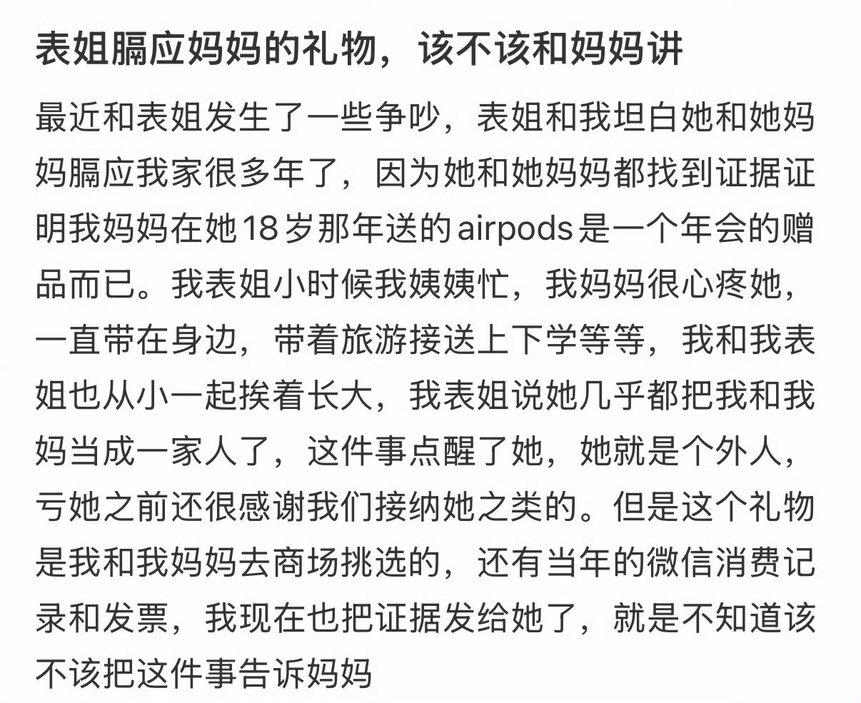 表姐膈应妈妈的礼物,该不该和妈妈讲