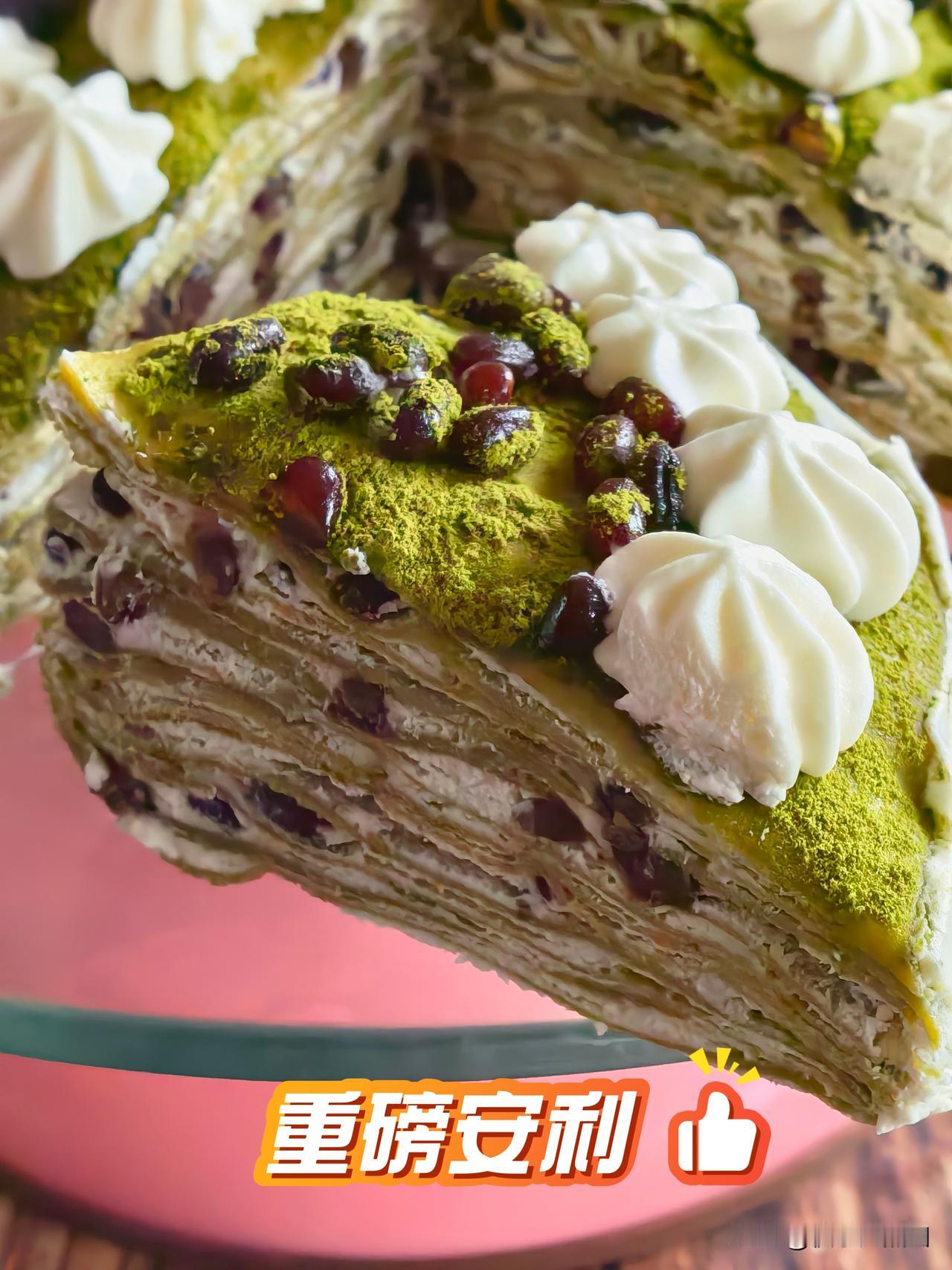 昨天的茉莉抹茶红豆千层放了一夜在冰箱切的漂亮,开吃了[鼓掌]