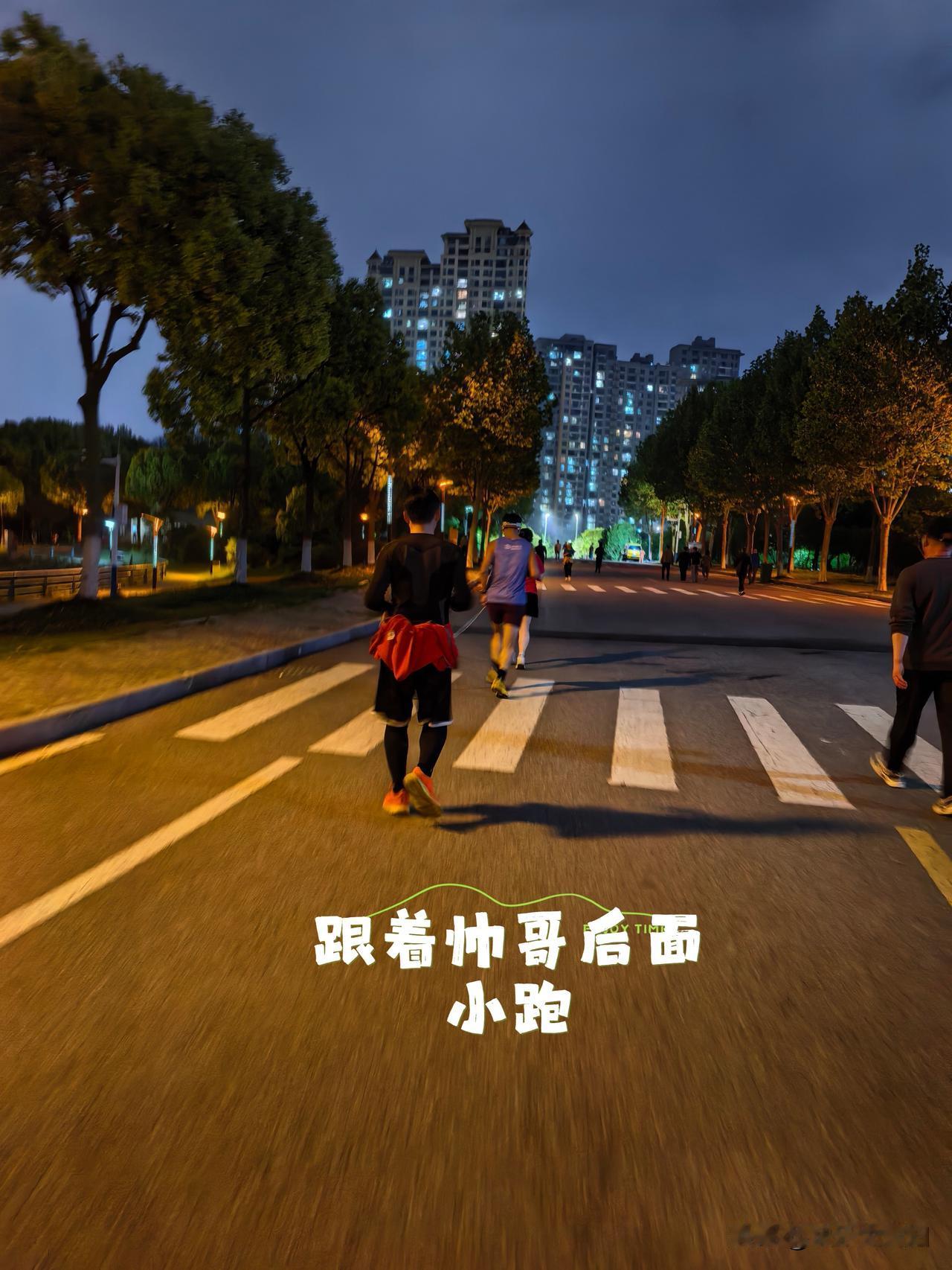 今天晚上环湖跟着前面帅哥慢跑了一圈
