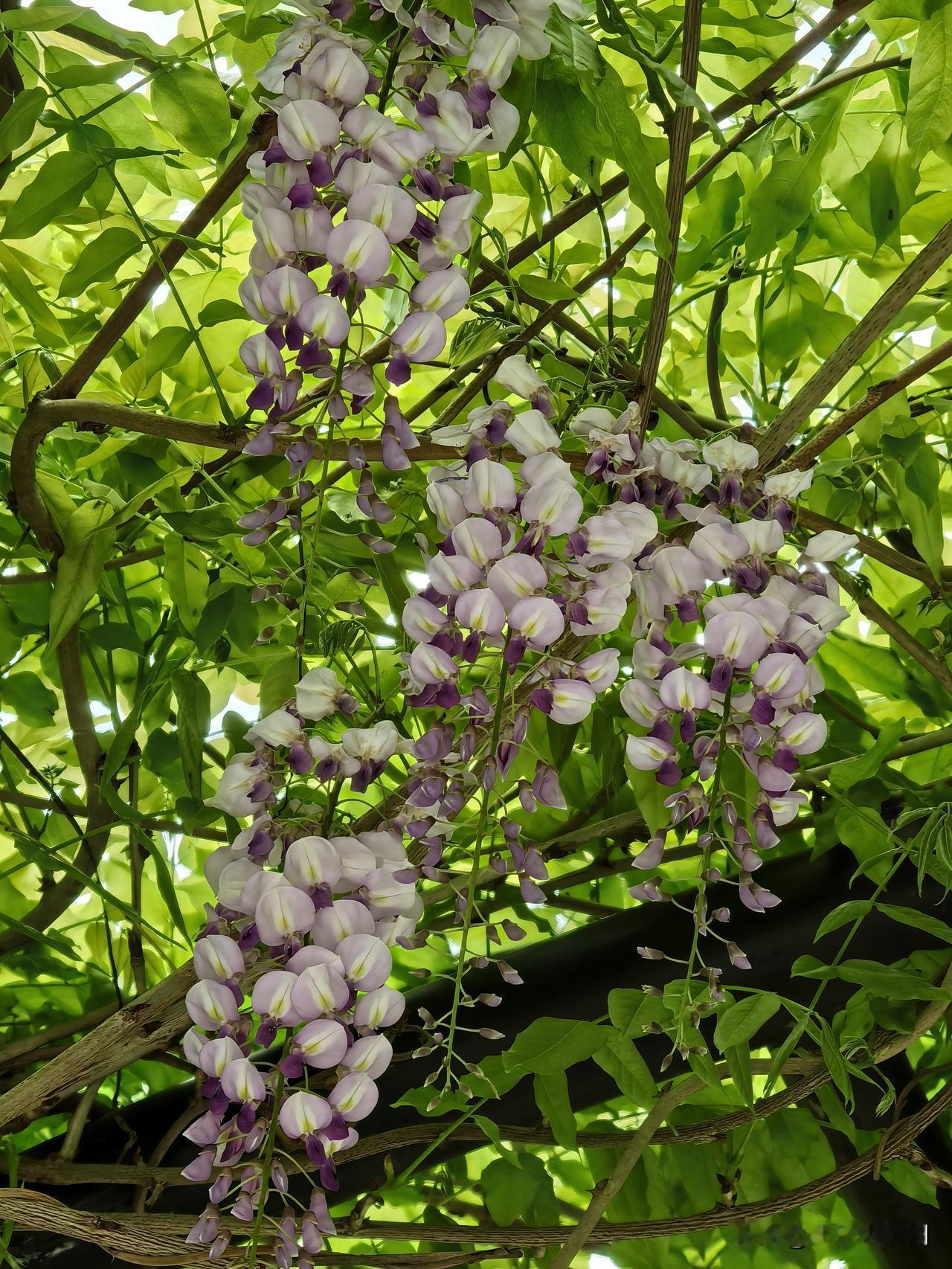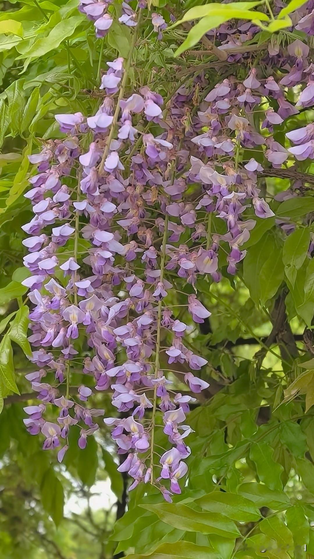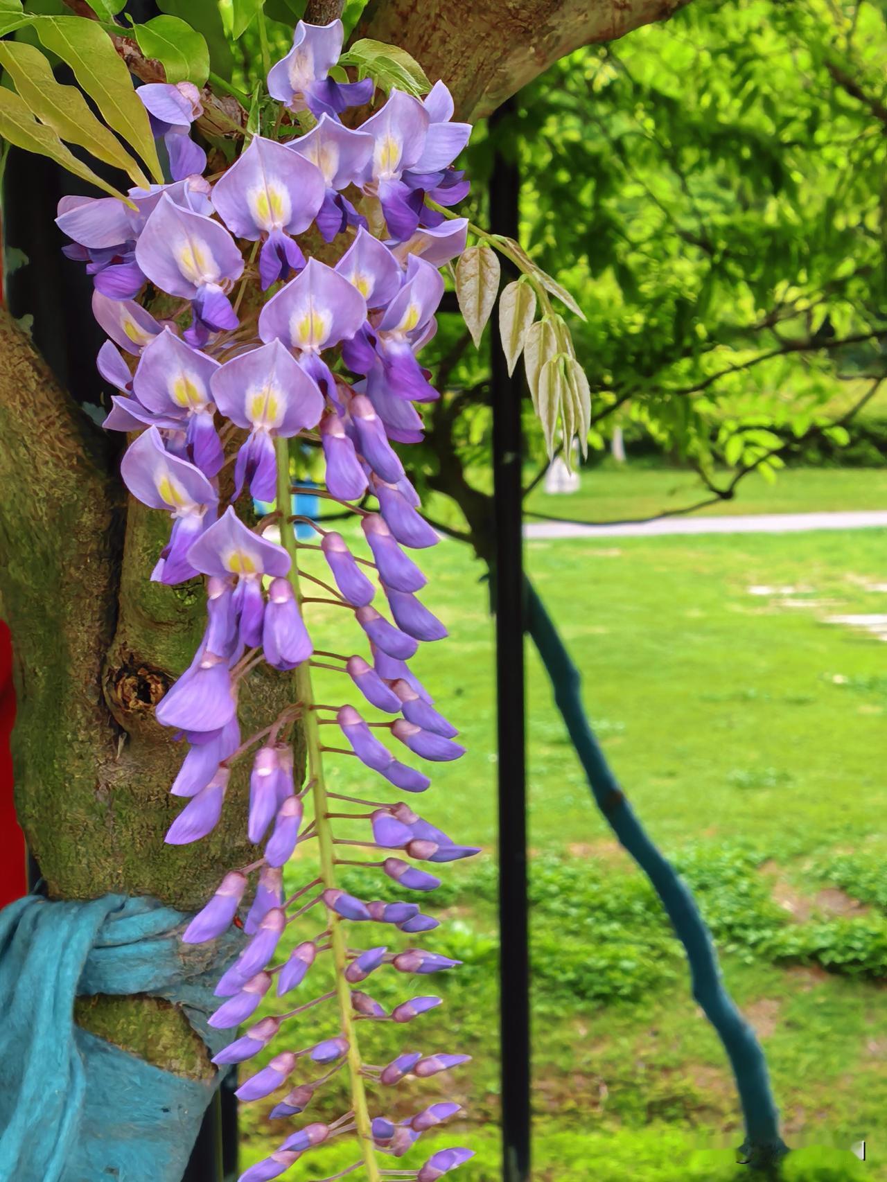 下午带着布丁来到市民公园。在沙滩旁,被紫藤花廊狠狠治愈了,紫的、白的花串垂下来,走在下面像闯进了童话世界。