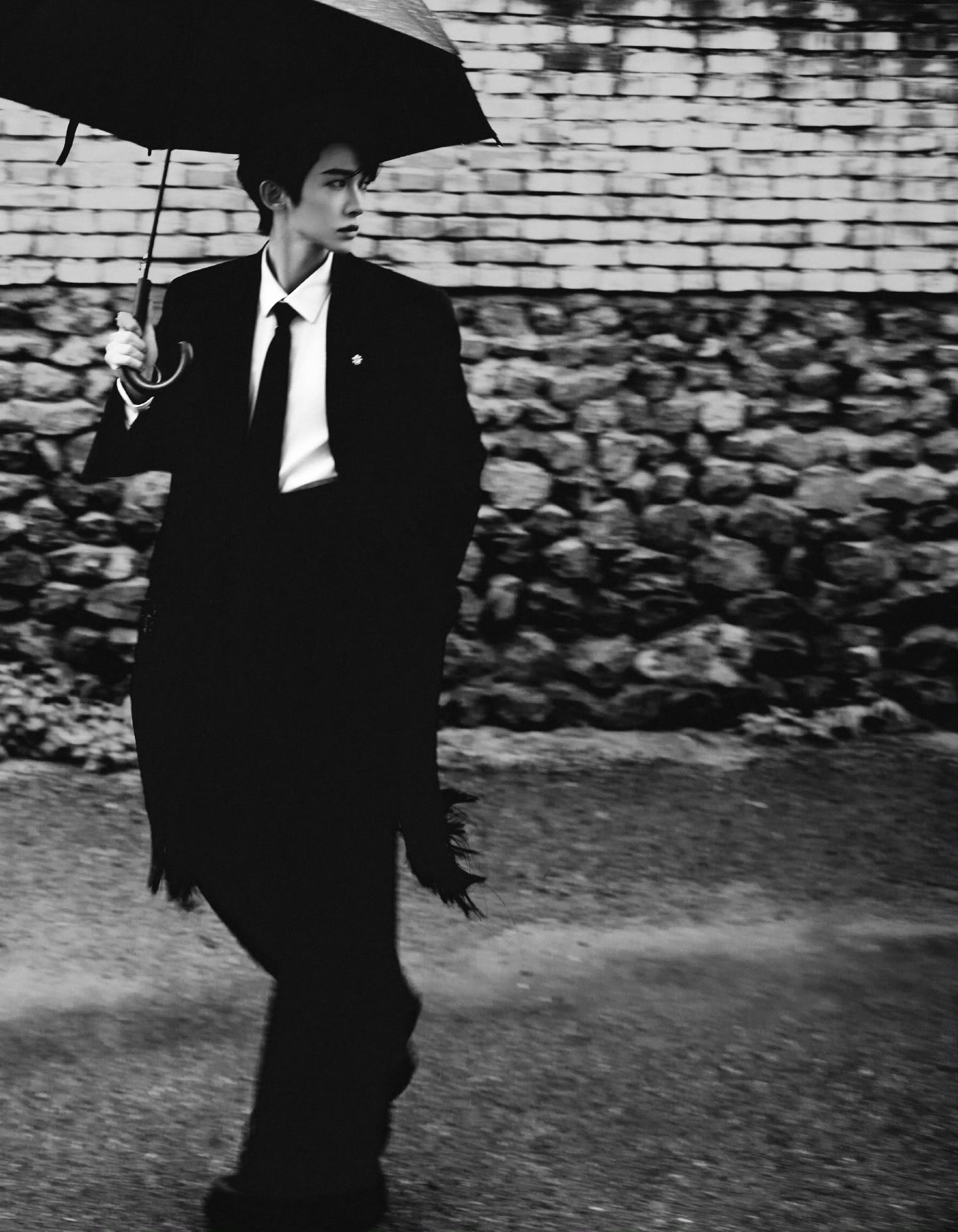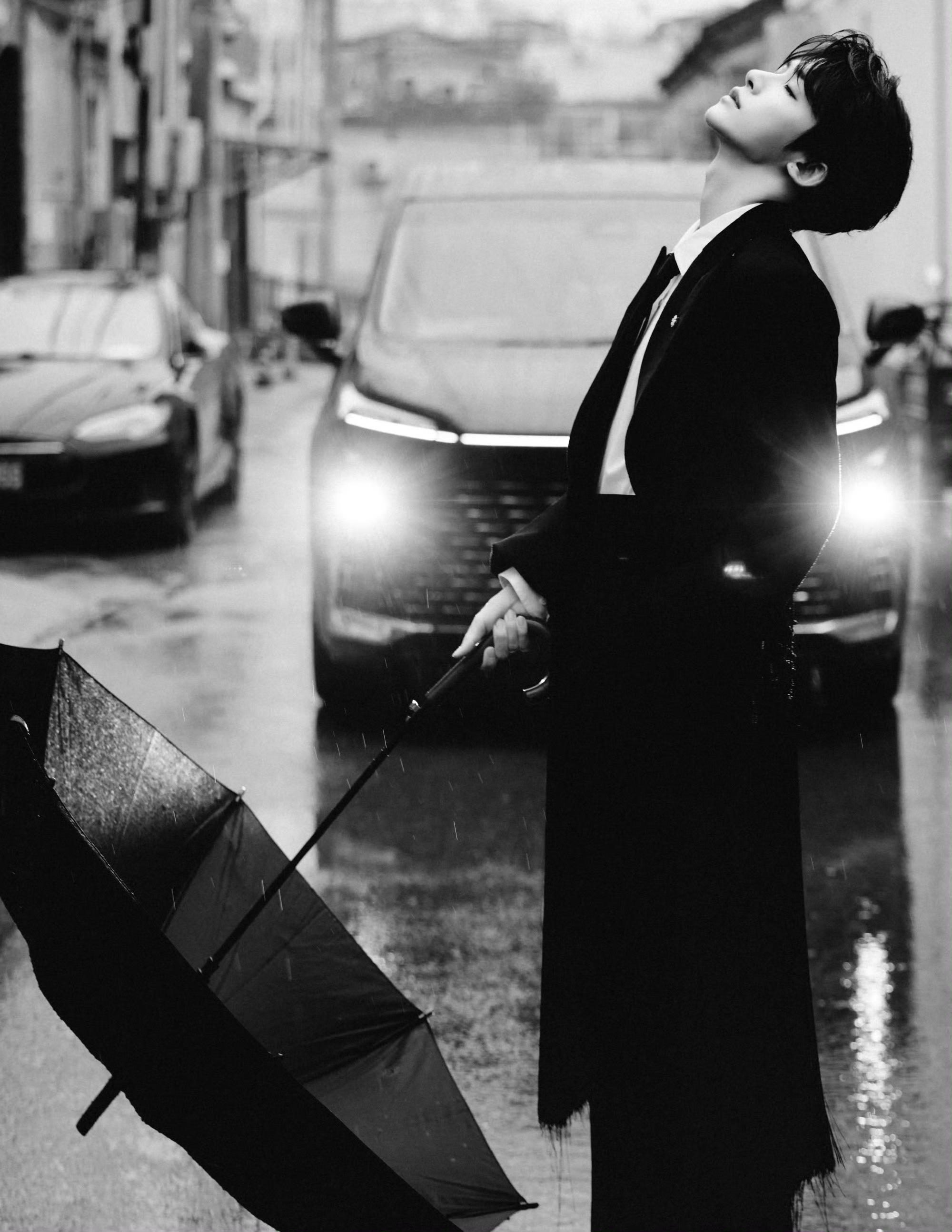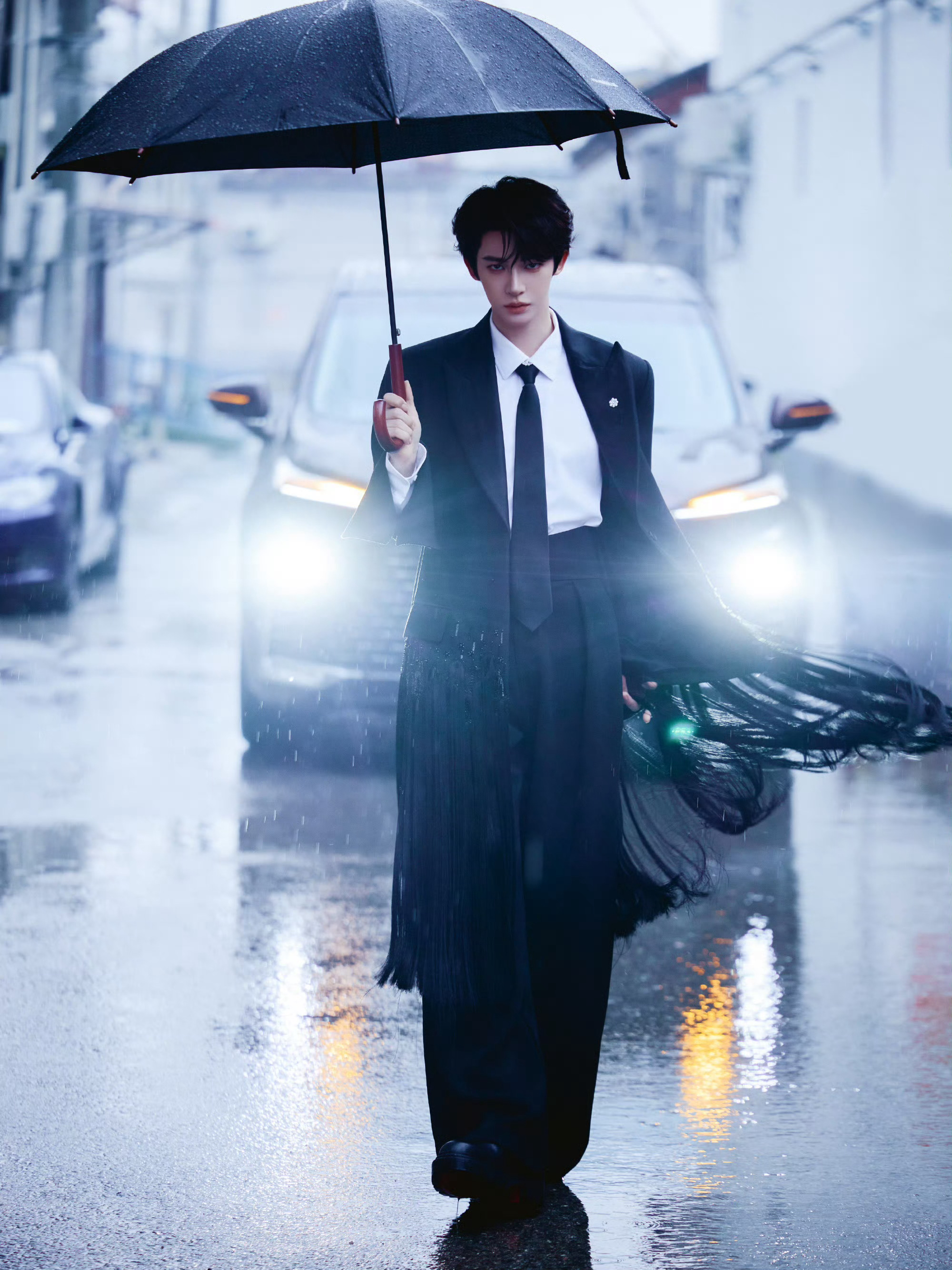 刘宇全黑造型出席北京国际电影节红毯,出席电影活动,出发图自然是氛围感十足的电影级
