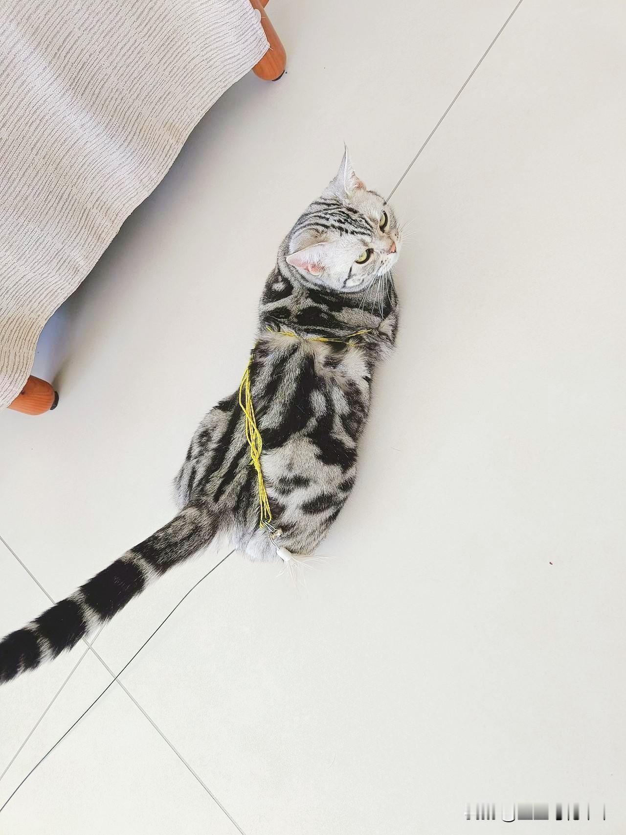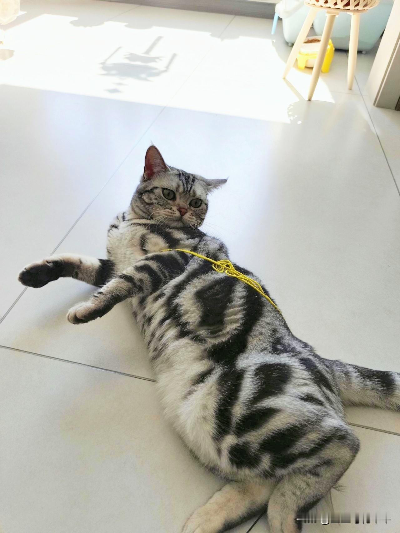 家里的这只美短是只淘气的小母猫,它满身的花纹长的龙飞凤舞的,我给它起名字叫大美。