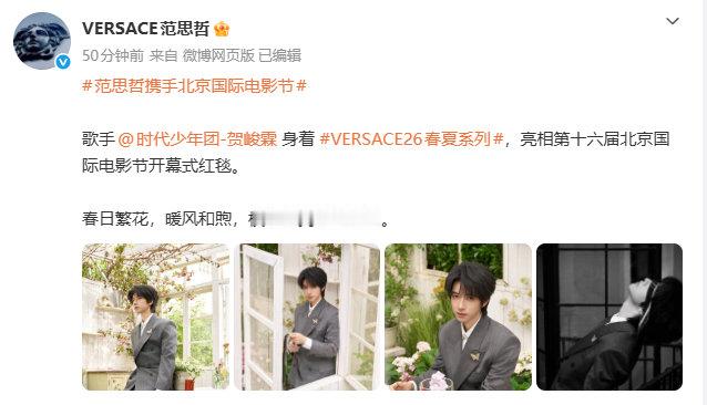 范思哲官方认领贺峻霖 贺峻霖春日少年 范思哲官方认领贺峻霖,贺峻霖春日少年上线,灰色西装搭配蝴蝶胸针,置身花丛间,好一个春日少年,期待和你的主持北影节的见面啦~ 北京国际电影节