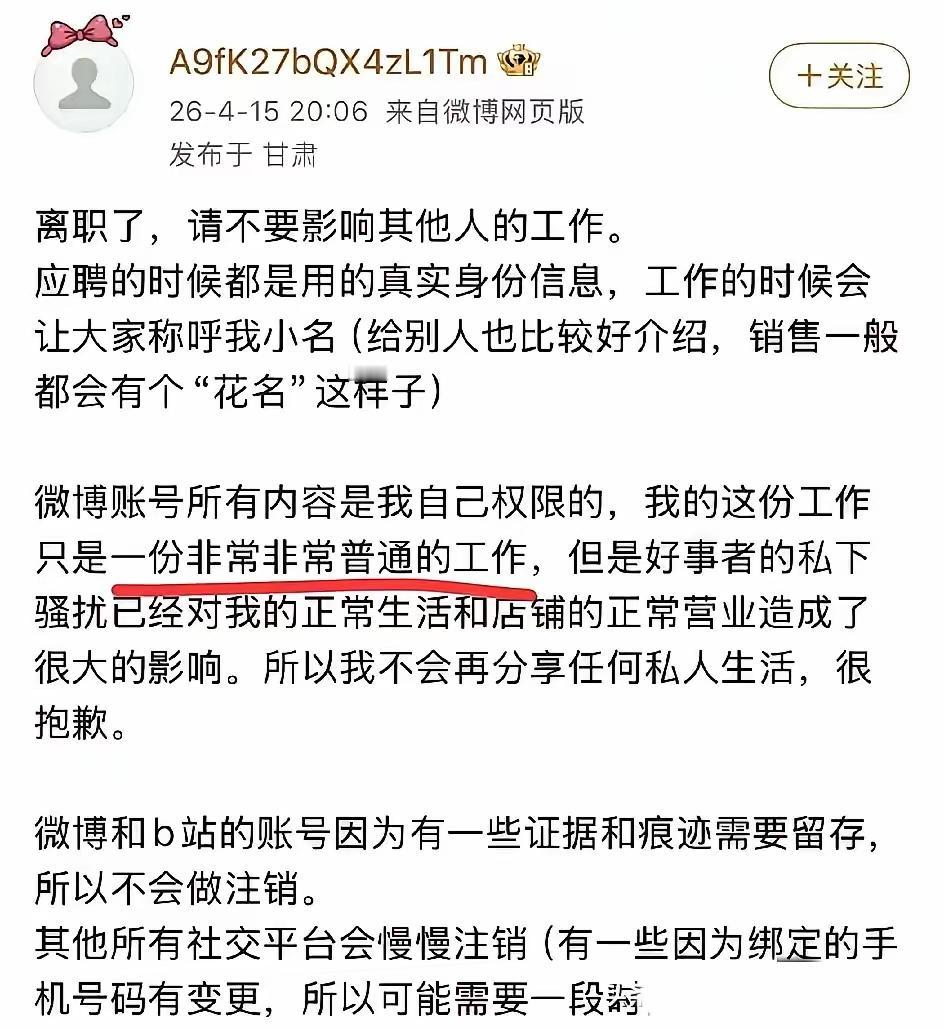 也可能在这工作了一段时间,对同事或老板心有不满,才故意报出地址和品牌名(她完全可以不显示这些的)。原本默默做好销售就行了,毕竟是线下的店面。她肯定清楚网友对她的态度。