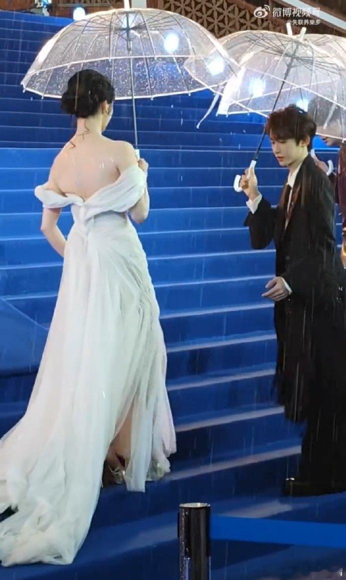 周洁琼背都淋湿了周洁琼像雨中的一块白玉 周洁琼像雨中的一块白玉,背都淋湿了还这么美