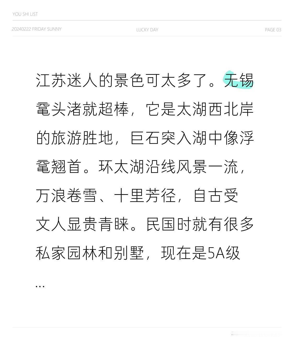 江苏迷人的景色可太多了。无锡鼋头渚就超棒,它是太湖西北岸的旅游胜地,巨石突入湖中像浮鼋翘首。环太湖沿线风景一流,万浪卷雪、十里芳径,自古受文人显贵青睐。民国时就有很多私家园林和别墅,现在是5A级景区。三四月去,能听春涛、赏樱花,太湖最美一角非它莫属。