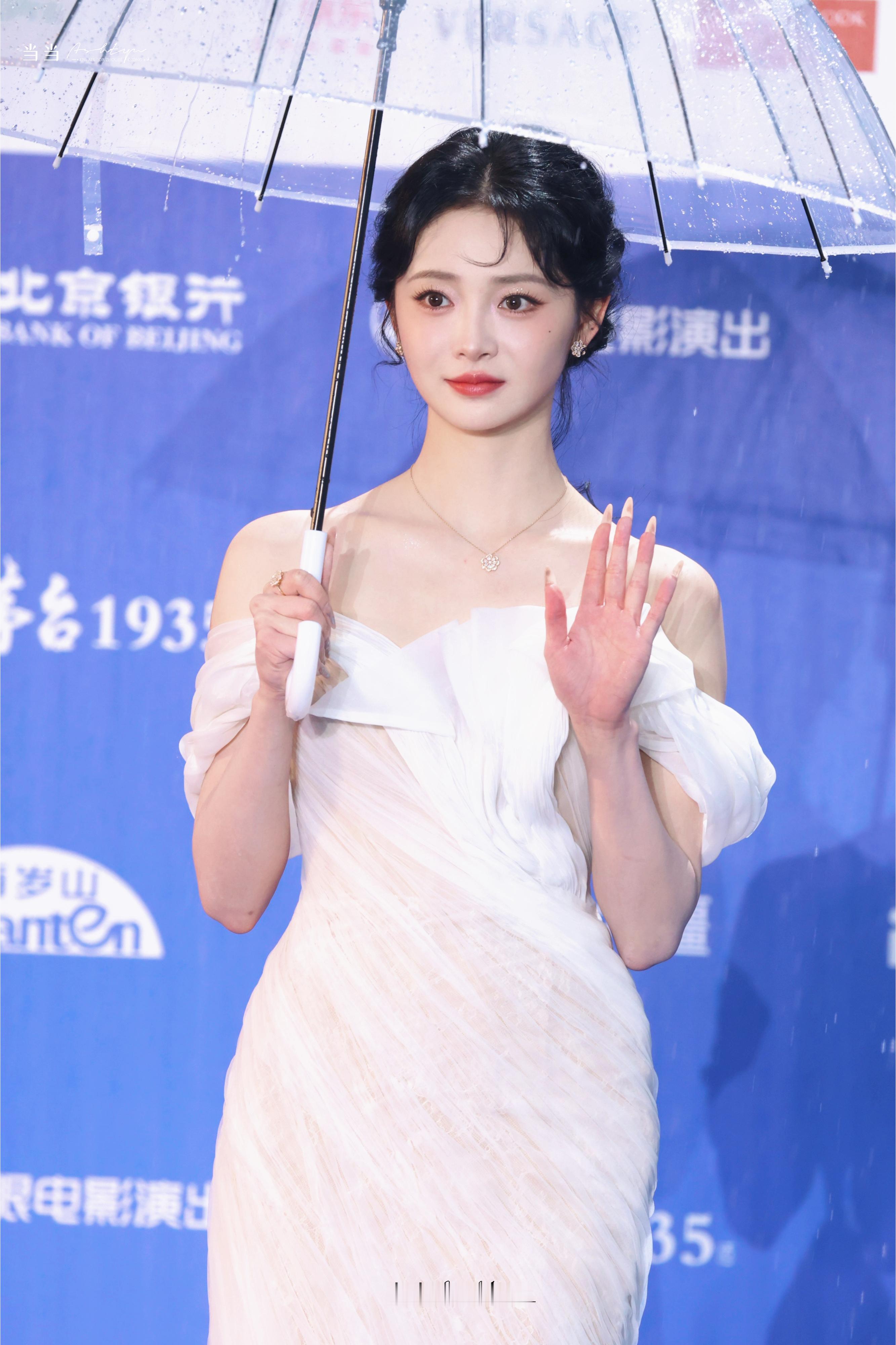 北影节红毯雨中撑伞神图持续产出中