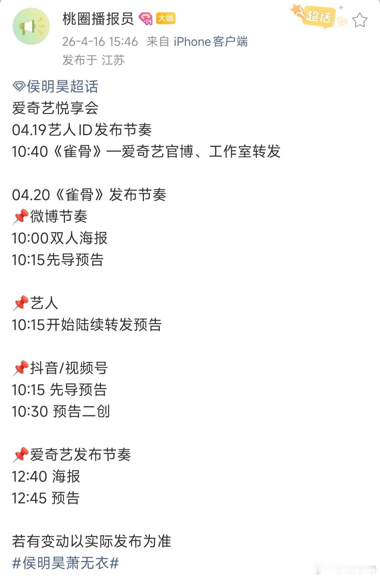 侯明昊的两部待播剧《雀骨》《碧血蝉》4.20都有物料,2026年帅哥好忙啊