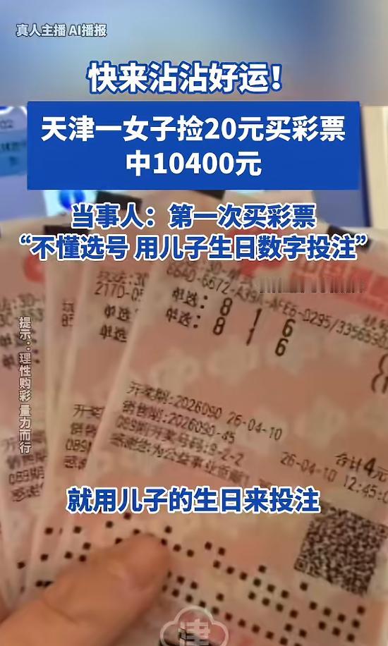 天津牛女士捡了20元买彩票,