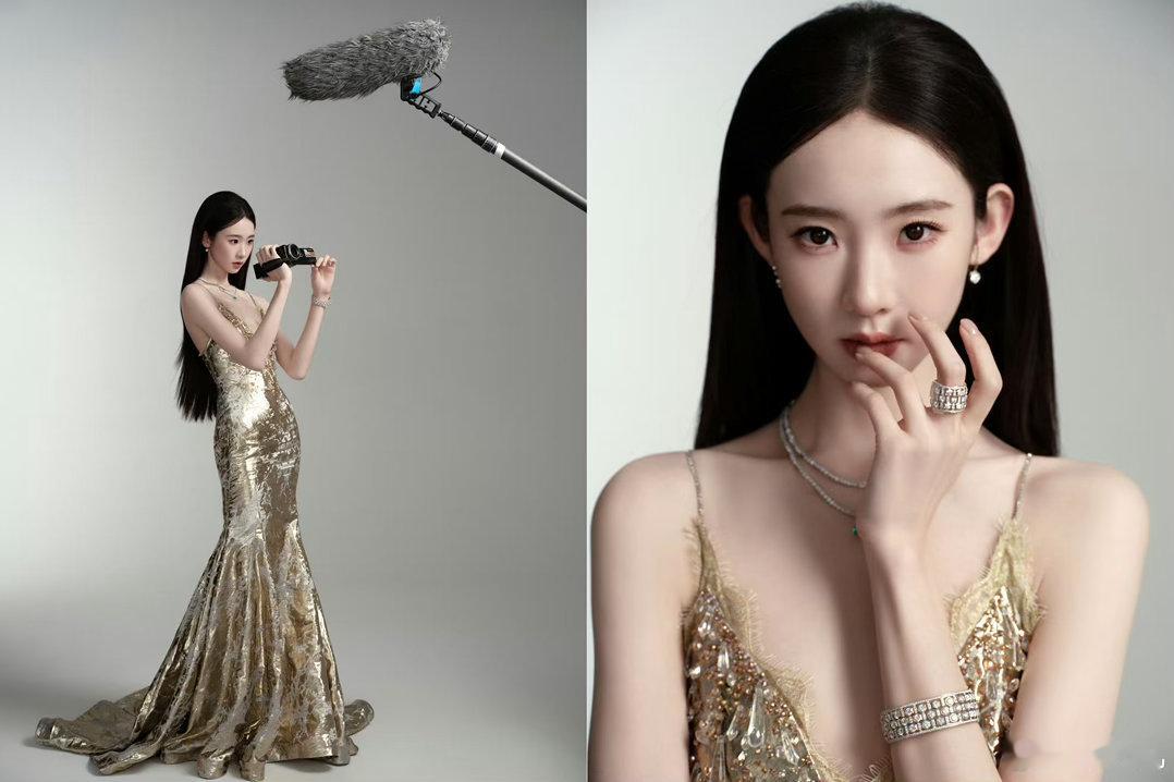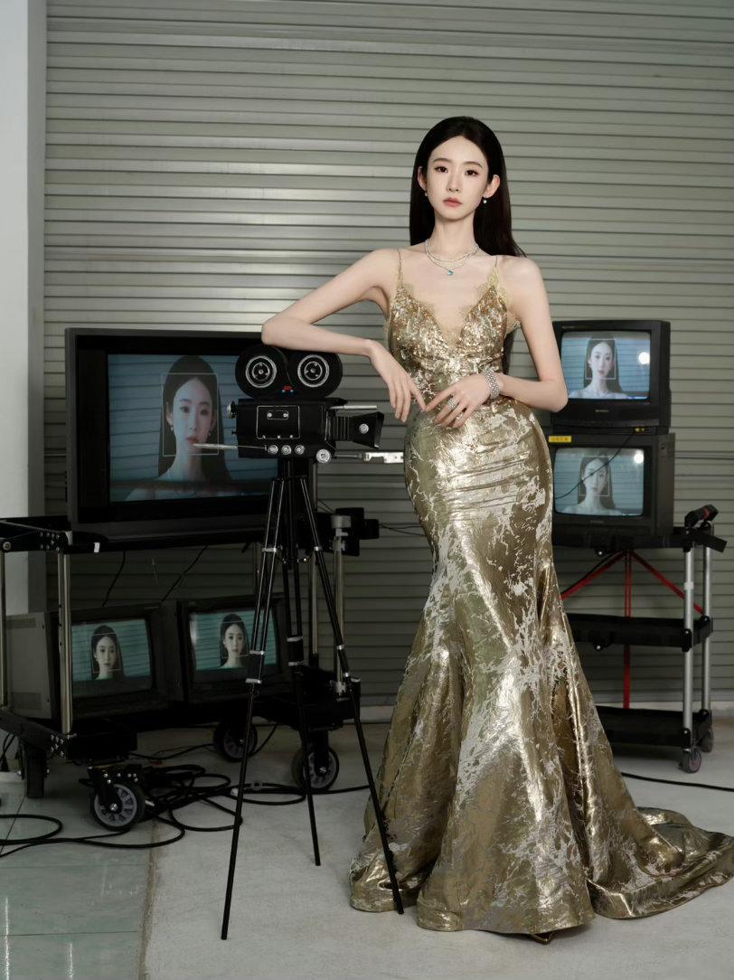 张艺凡鎏金吊带礼裙张艺凡北京国际电影节造型 张艺凡北京国际电影节造型鎏金吊带礼