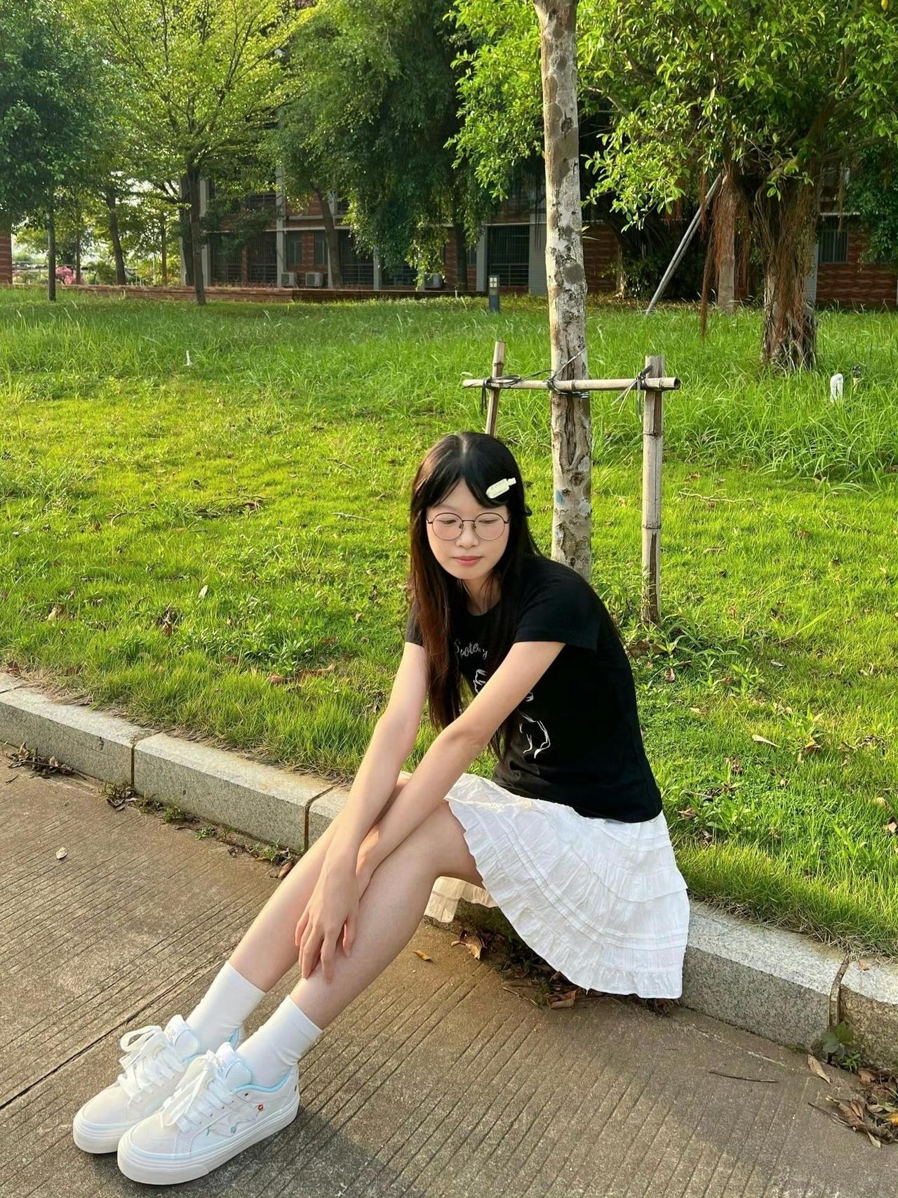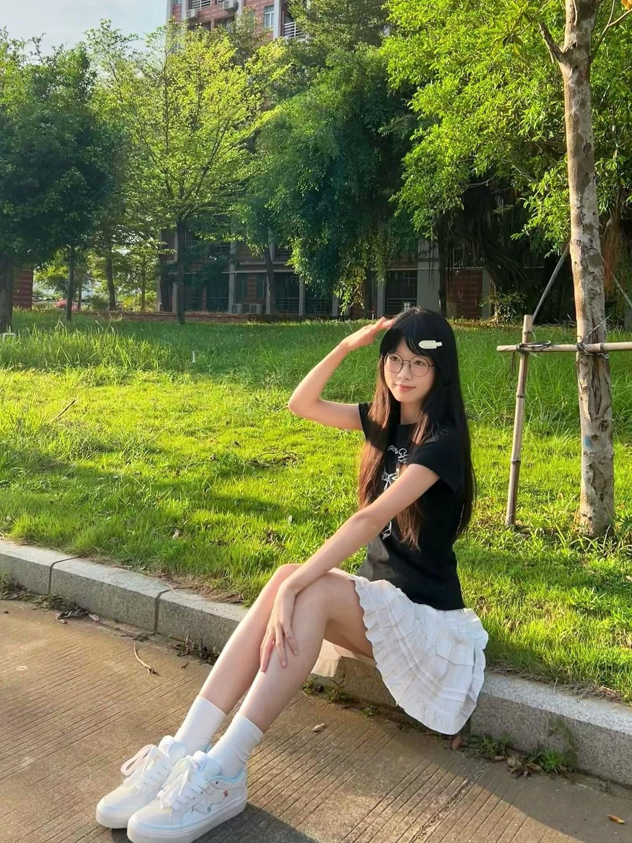 黑T配白裙的简约穿搭,踩上小白鞋奔赴户外的美好,青春的自在与美好,解锁元气满满的