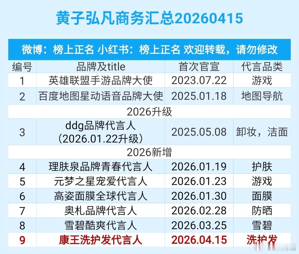 黄子弘凡最新商务代言还有9个,去年高峰期有20个,被哪些竞品稀释了?