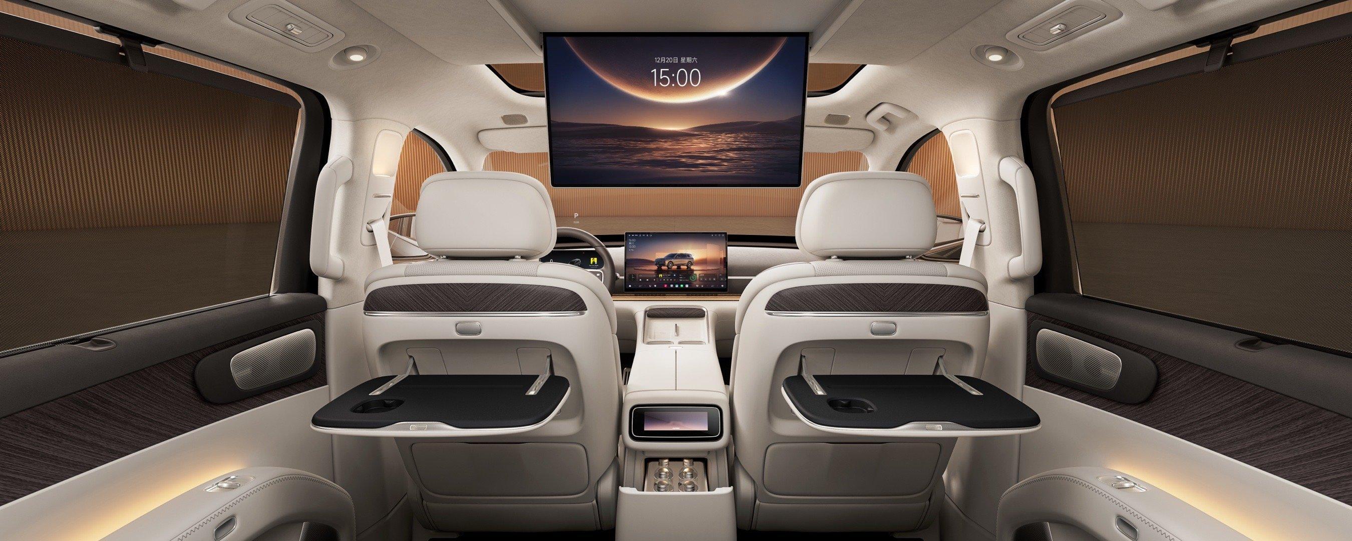 配置更不用说,以零跑的风格,直接堆到顶:空气悬架、车载冷暖冰箱、21英寸大轮毂、全粒面真皮座舱、五屏交互空间全都有,六座大空间布局,二排零重力座椅+三排贵宾级乘坐体验,家用商务,都能当好多面手!