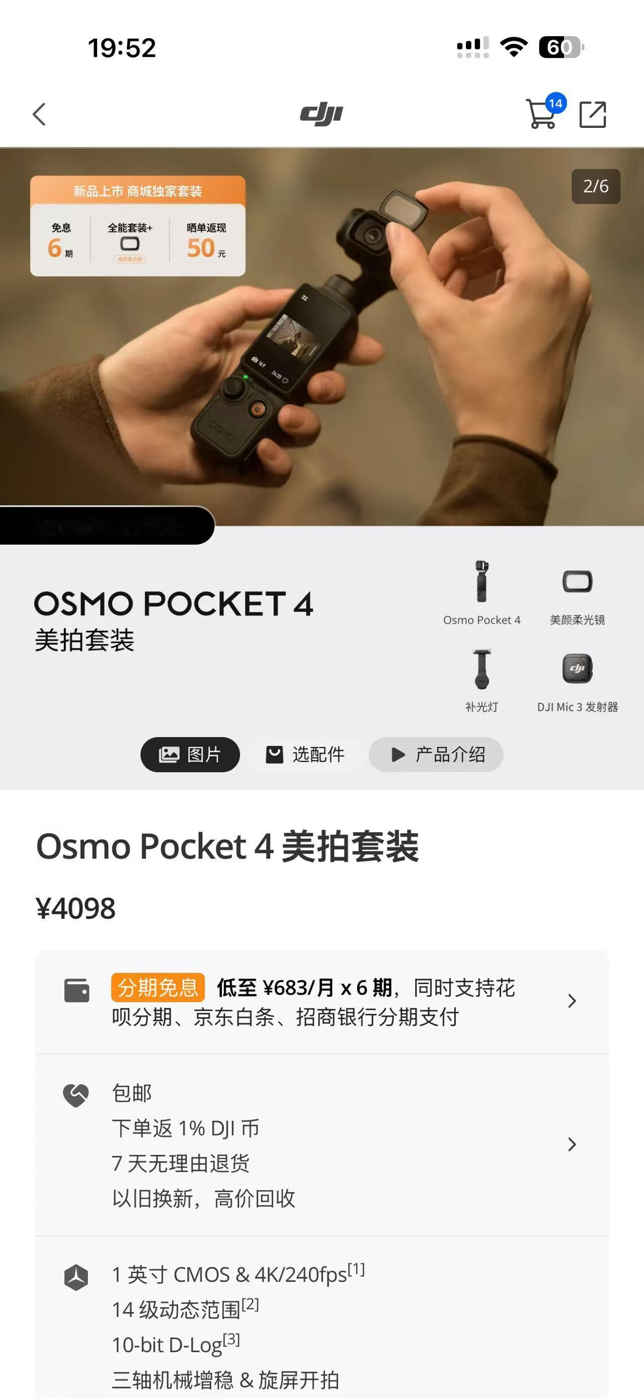 美拍套装 售价4090元包含: 美颜柔光镜、补光灯、DJI Mic3发射器,增广镜、迷你三脚架; 大疆Pocket4值得买吗大疆Pocket4评测
