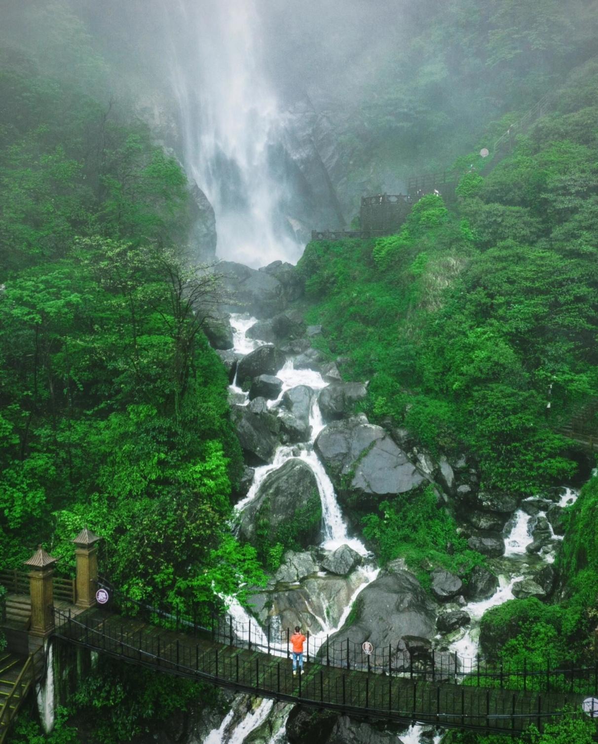 青云栈道缠绕绝壁,云海漫卷起伏,天光流转间缥缈若仙。山巅月湖澄澈如镜,映流云峰影。灵泉温润流淌,糅合山色禅意,峰、瀑、林、泉相融共生,书写独属于赣地的诗意山河。