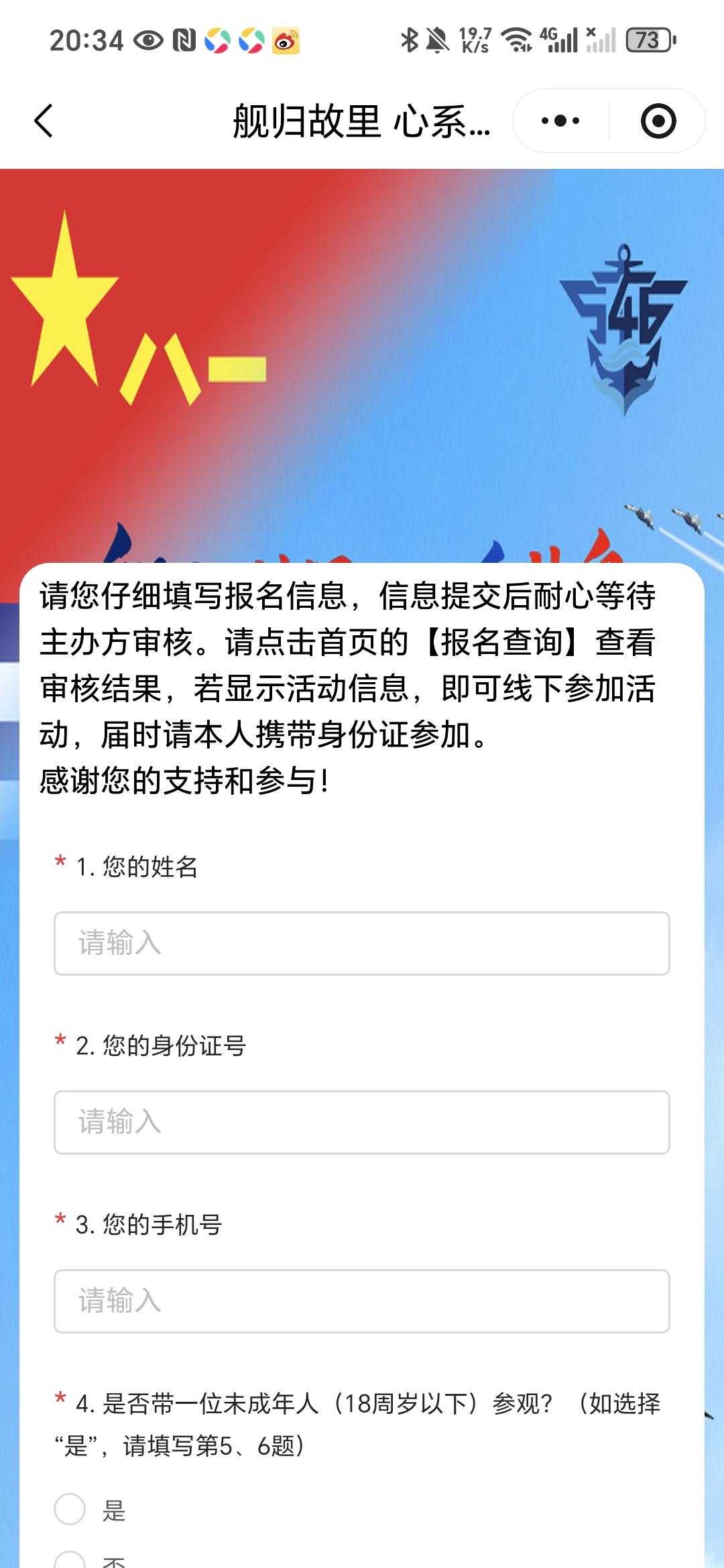 盐城舰开放参观需提前预约,在“又见燕舞”小程序上申请,今天就开始预约,前后共开放三天,4月24、25、26日,每天上下午各开放一些时段,不过,估计期盼参观的人数众多,需要预约中签,中签后凭身份证免费参观浏览。