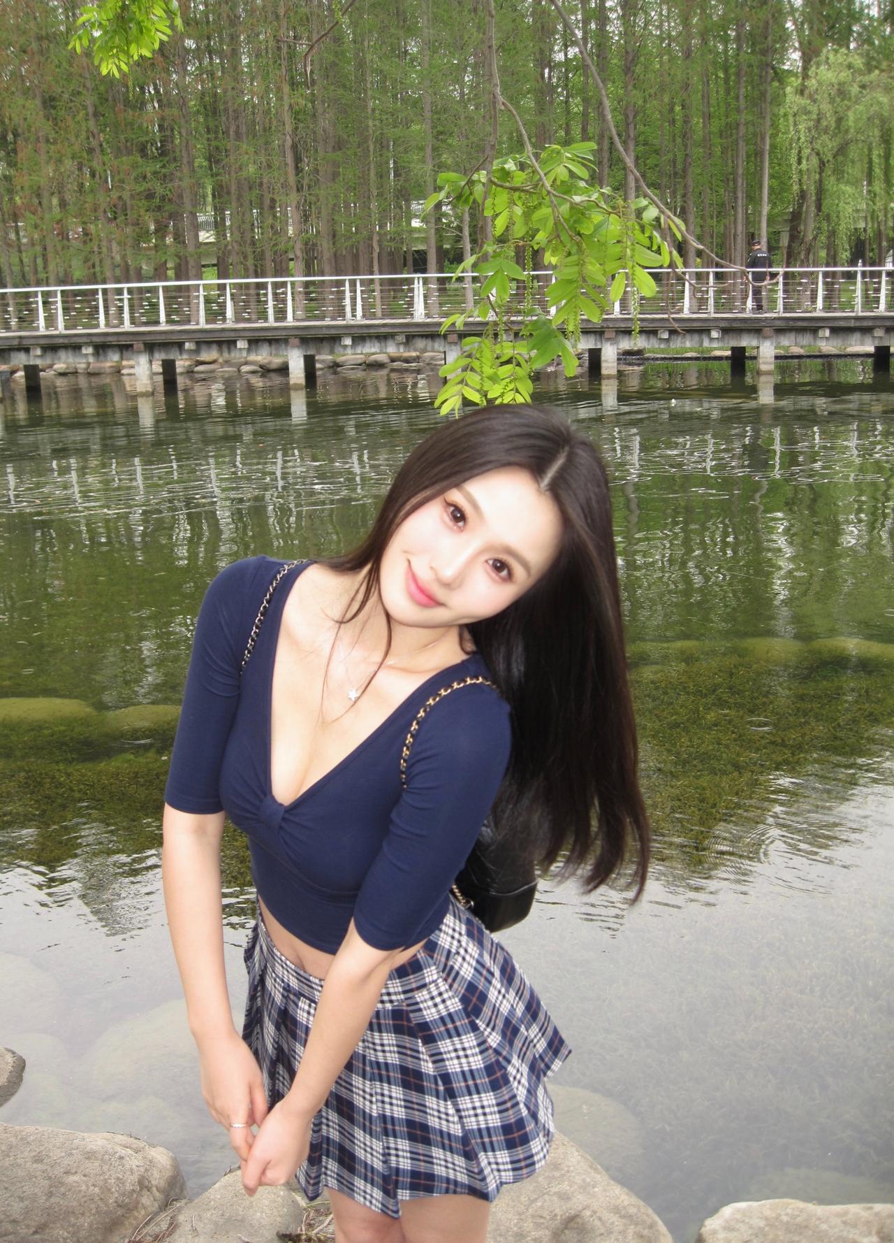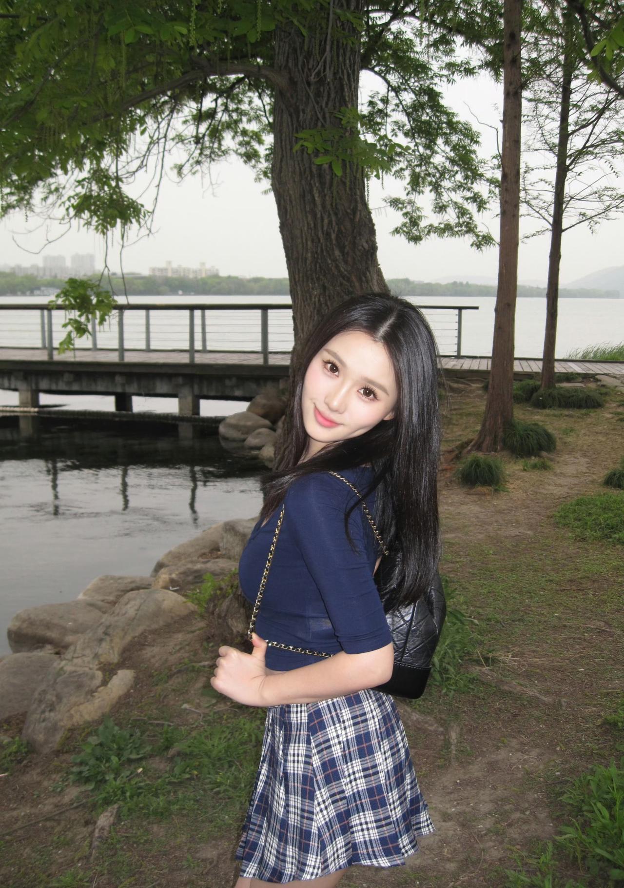 藏青上衣+格纹短裙,是属于春天的清爽感!