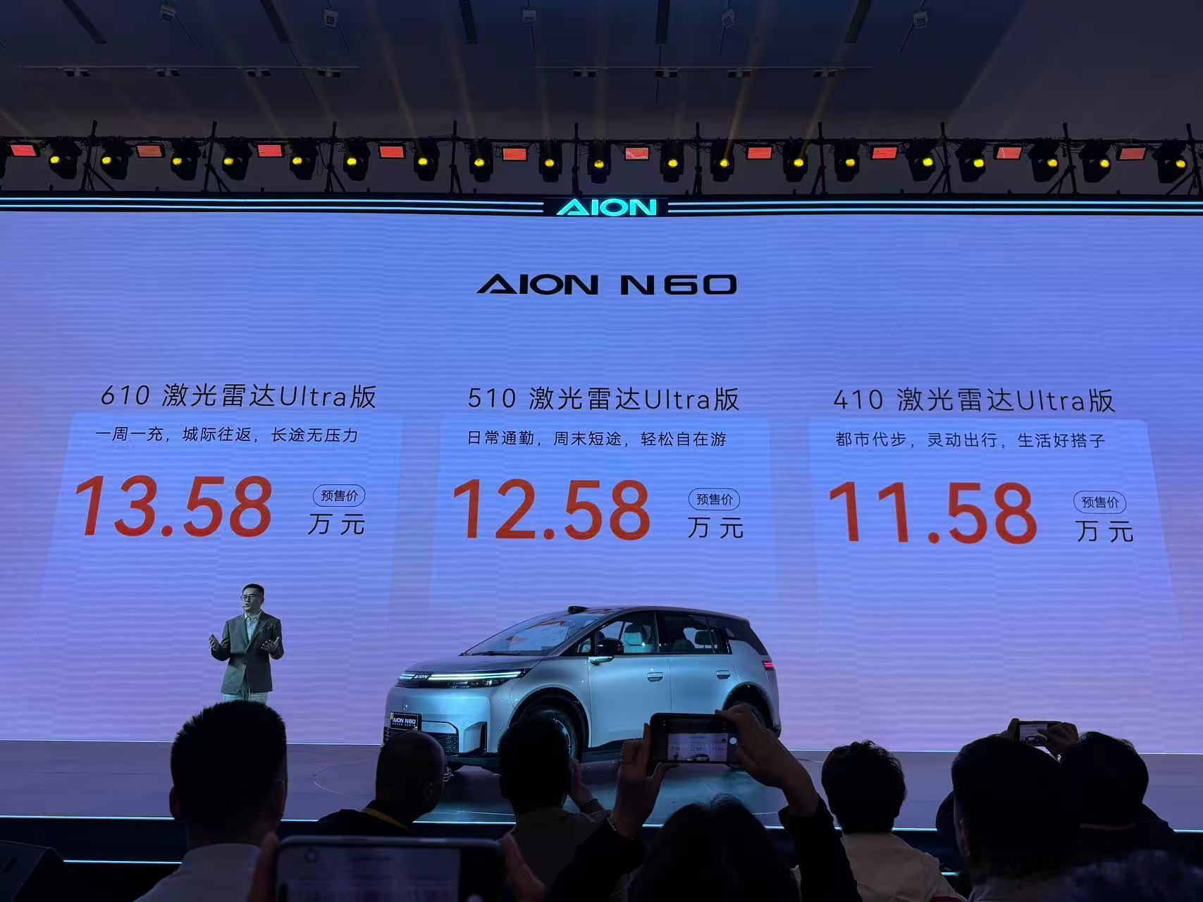 埃安N60 11.58万起开启预售,超20项全系标配,重新定义15万内价值标杆,现在下订,599元享价值15000元预售权益。广汽星灵智行联合文远知行,把L4级Robotaxi同源算法塞进国民车,不止能开,敢开、好开,更像人开。硬件顶配,体验越级,年轻人配得上最好的科技,弹匣电池、非晶合金电驱,全部装进年轻人的第一台车里。不为炫技,只为每一个认真生活的你,从容出发,轻松抵达。埃安N60全系标配高阶智能11.58万元起埃安N60正式预售11.58万起埃安N60