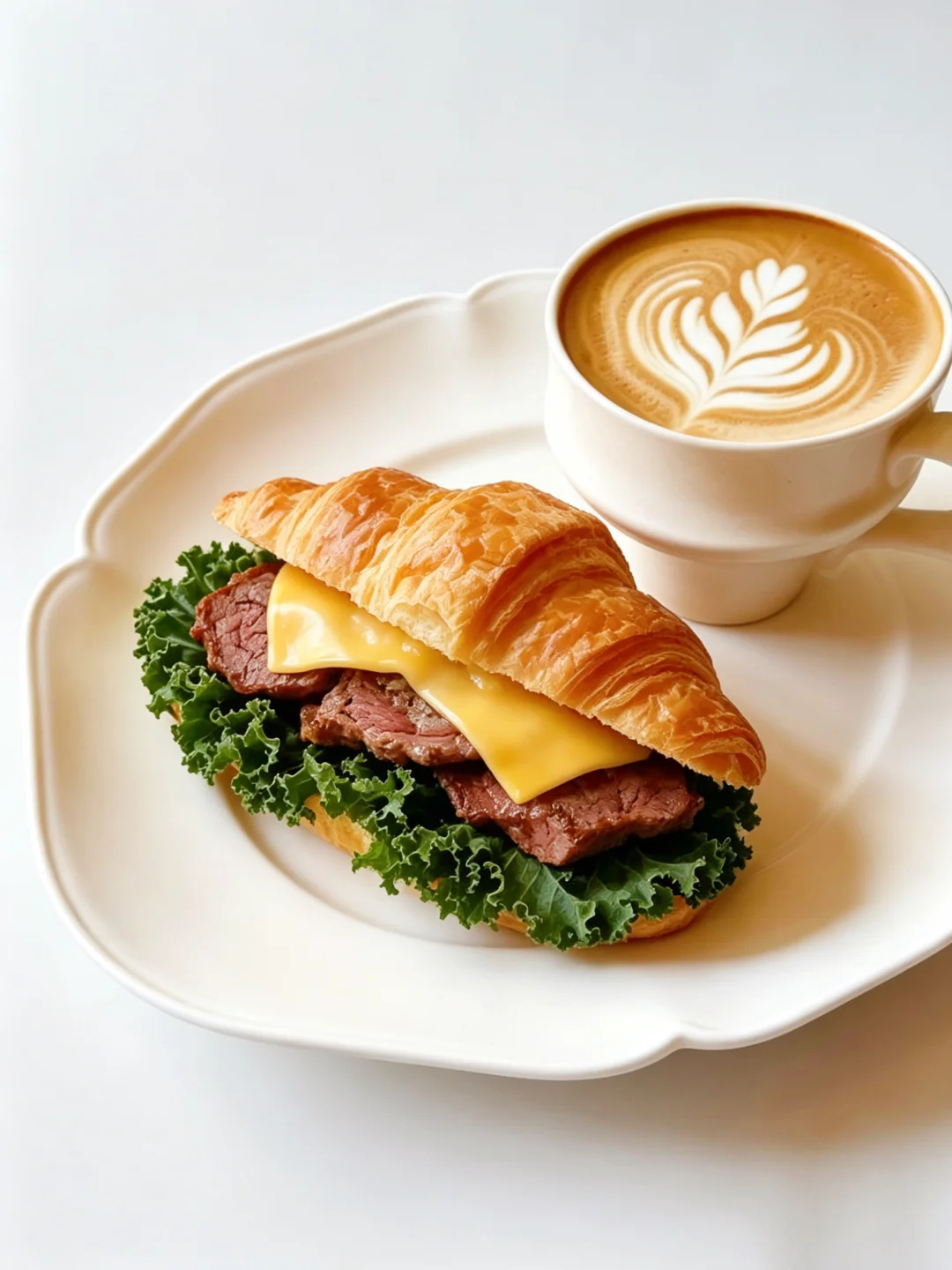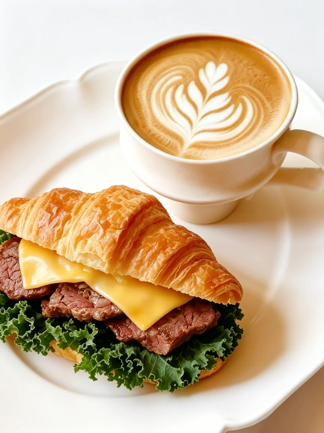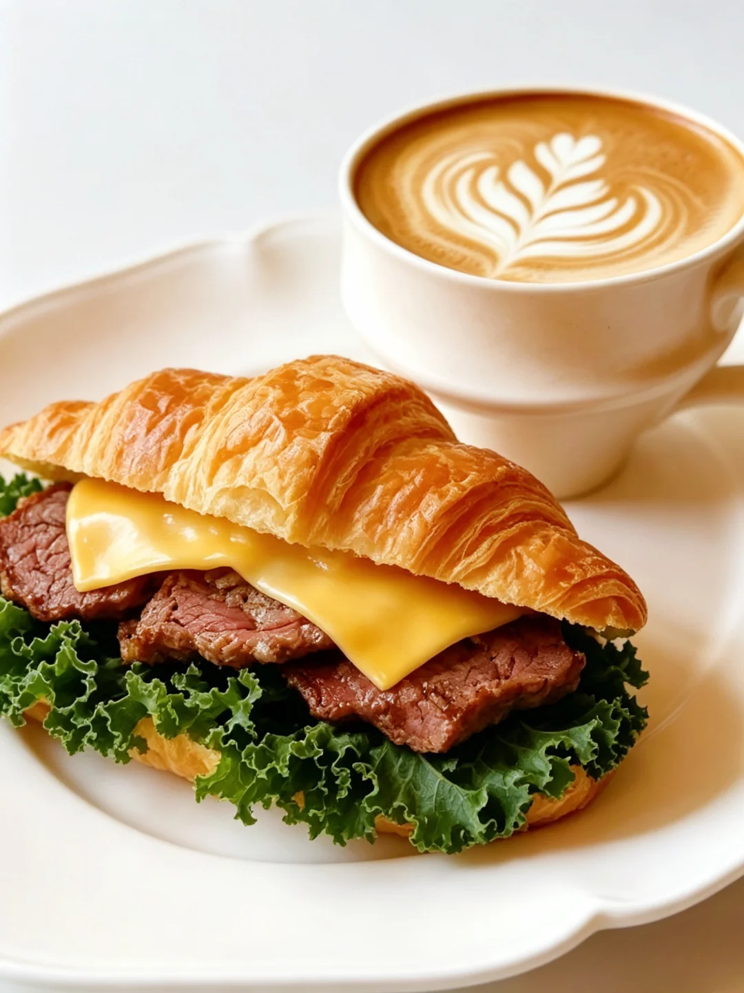 早餐 | 牛肉芝士可颂三明治 | 拿铁咖啡