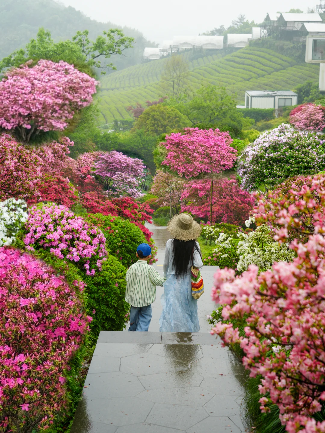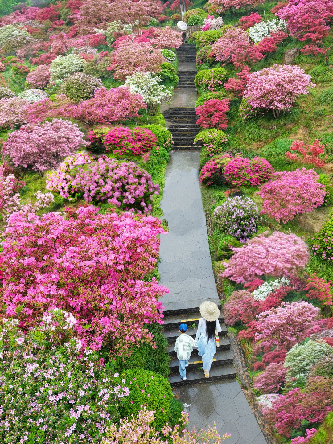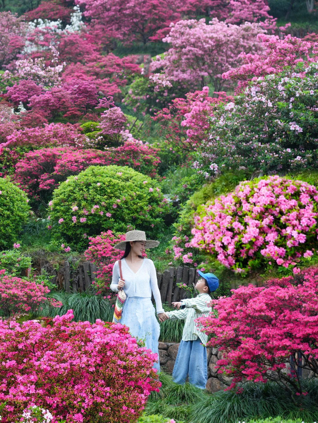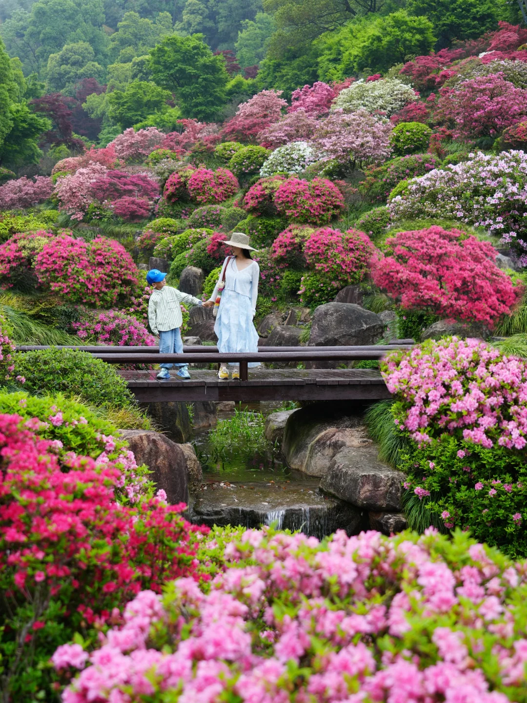 整片山谷被杜鹃花海簇拥,漫步木栈道,随手定格花海浪漫