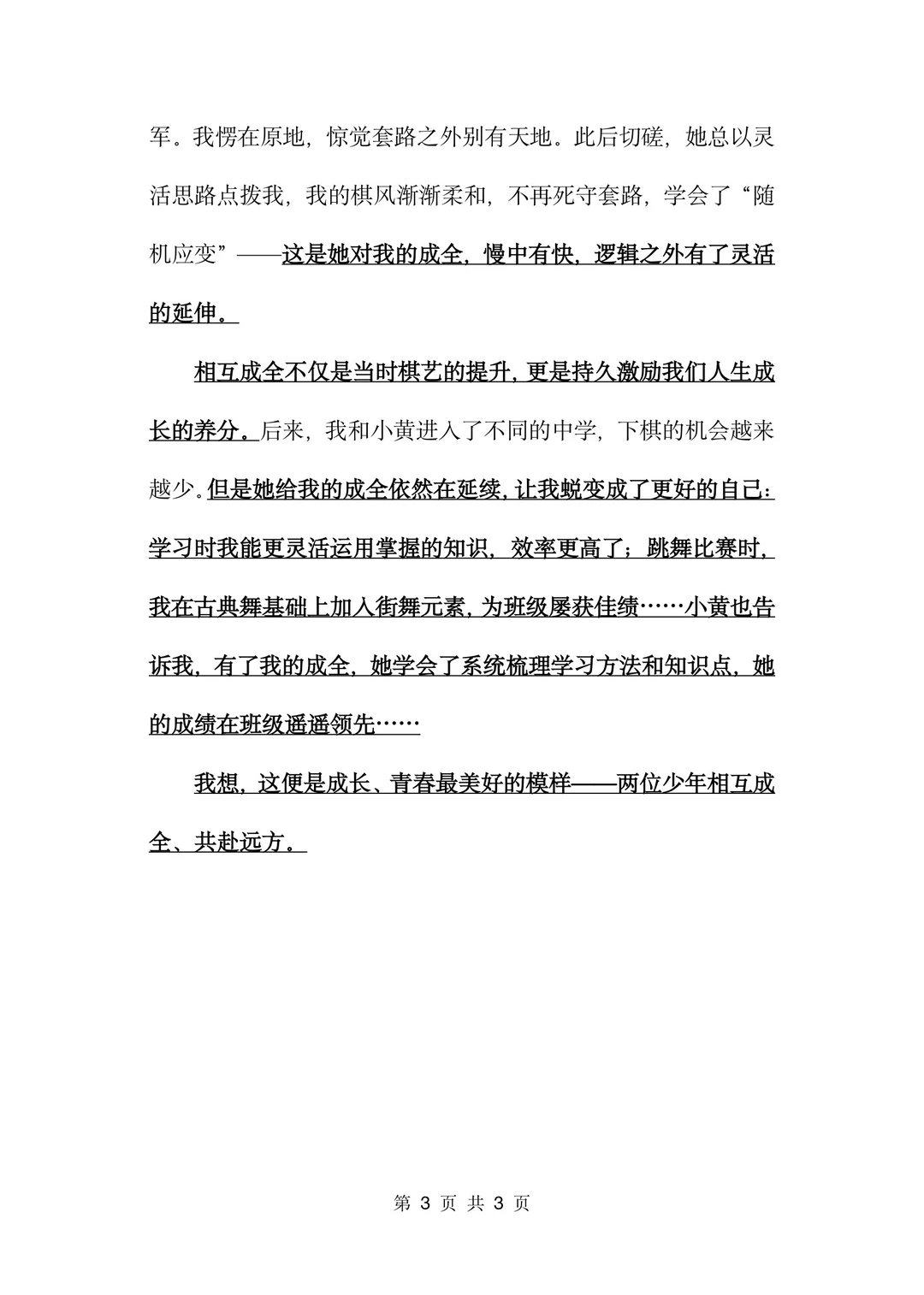 《相互成全》A类范文,标注点题句(原创)