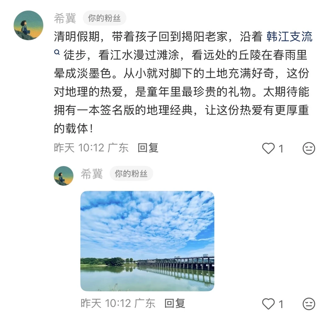 也恭喜中奖的六位粉丝朋友,你们将随机获得图一的一本书。希望大家都能保持对地理学的热爱,也欢迎大家持续关注我置顶的活动。我将持续为大家带来签名版《中国国家地理》杂志和地理学相关书籍[握手R][握手R][握手R][握手R]