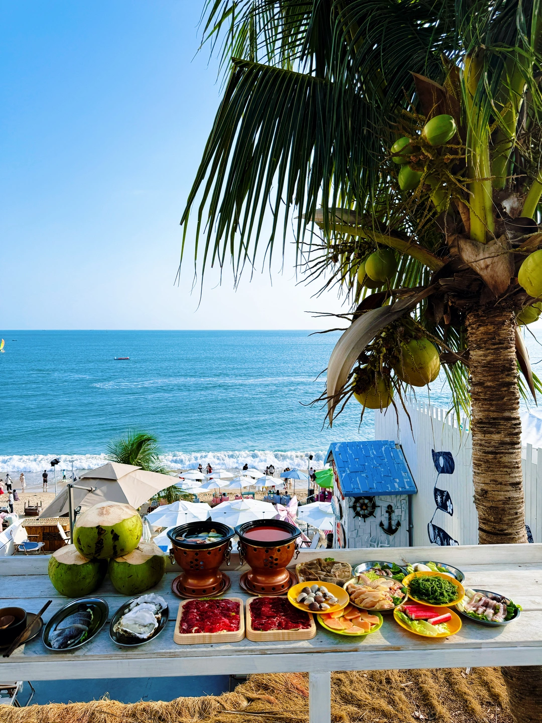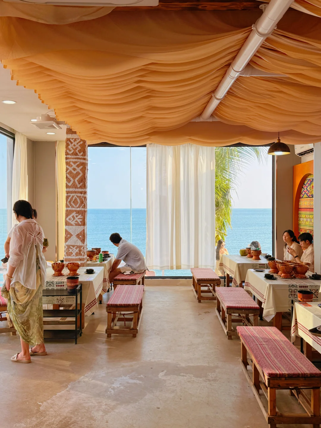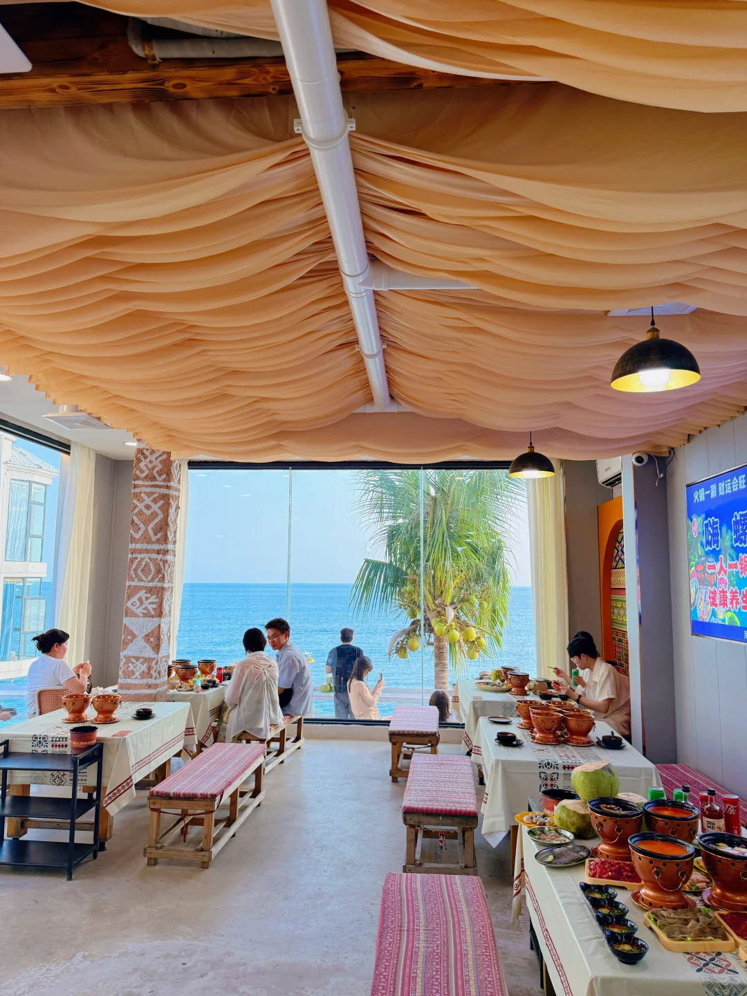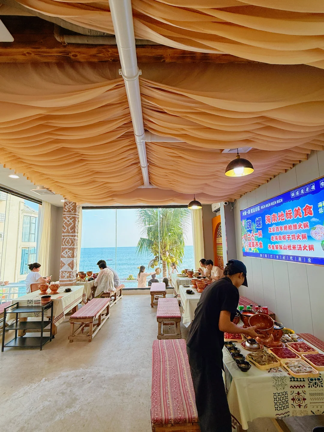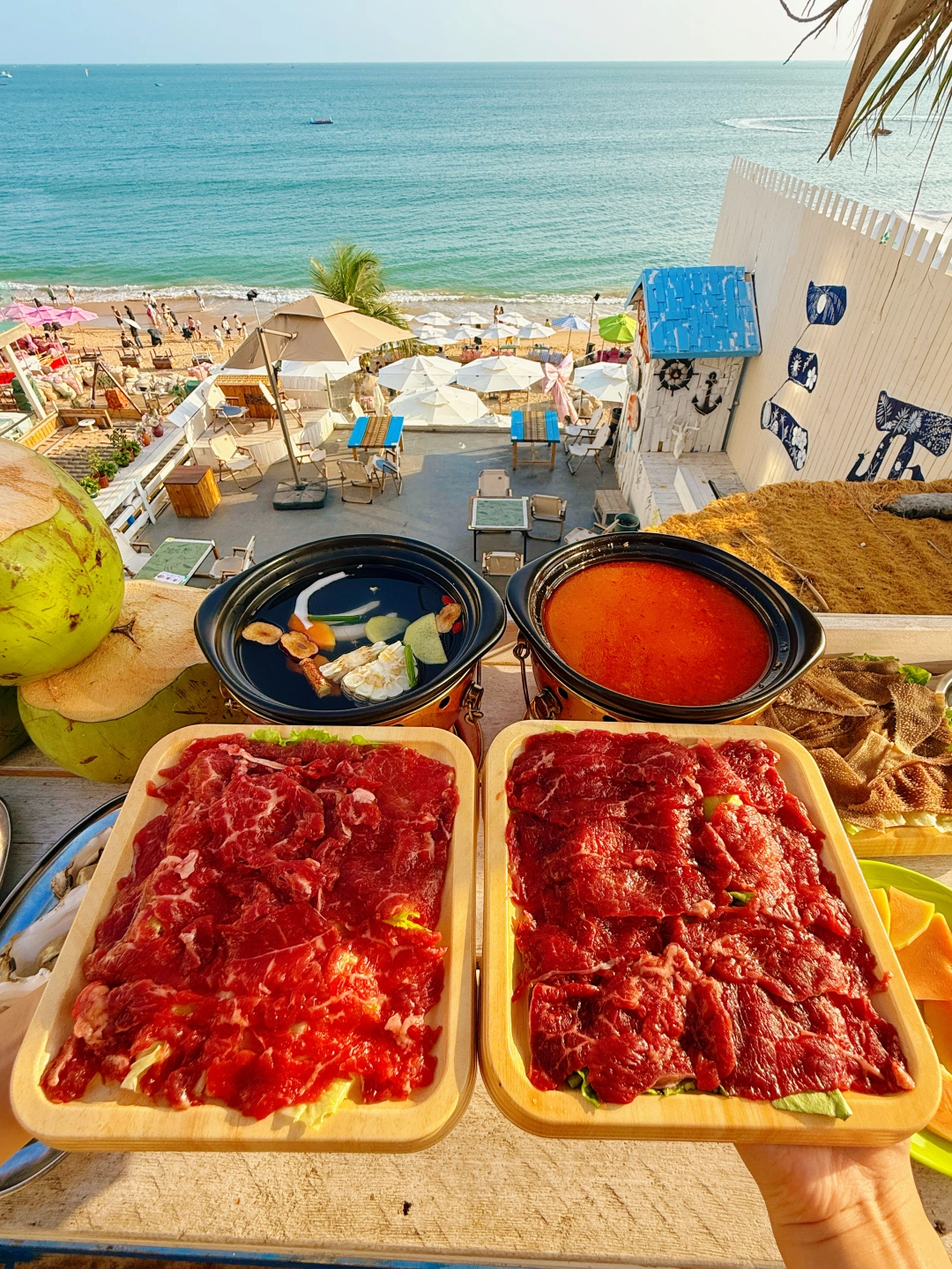 二楼观景位直面大海,吹着海风涮火锅,夕阳一落氛围感直接拉满,拍照巨出片。