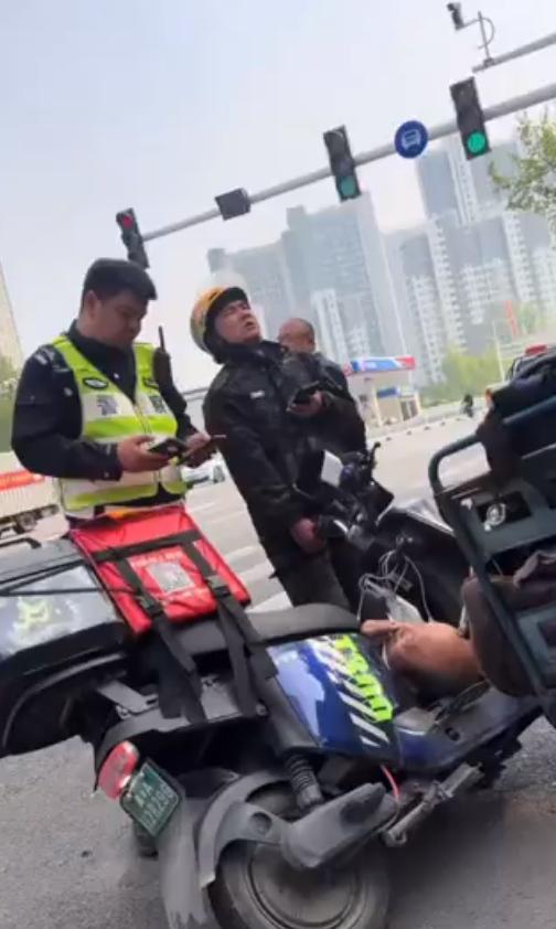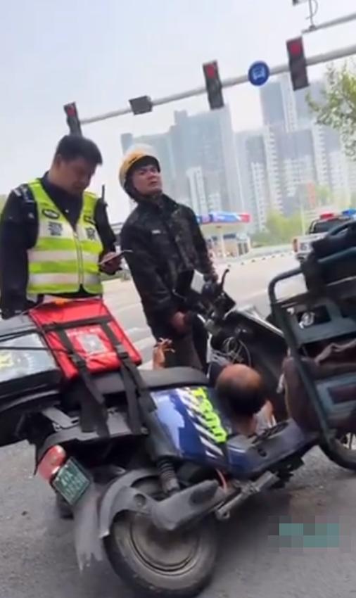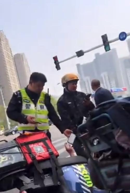 交警问清楚情况后,直接转钱给老汉。外卖小哥哭着追上去,想留交警的联系方式,交警说了句“没事”,转身走了。