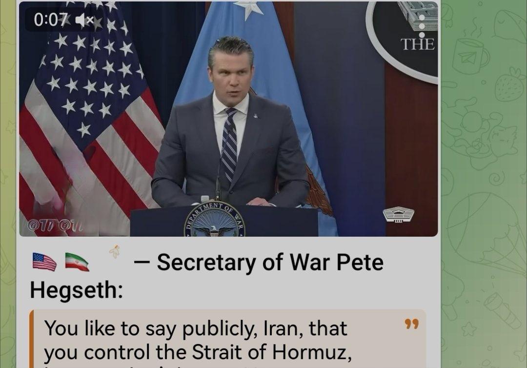 国防部长皮特.赫格塞斯:你们喜欢在公开场合声称伊朗控制着霍尔木兹海峡,但你们既没有海军,也缺乏真正的态势感知能力。你们根本无法控制任何东西。