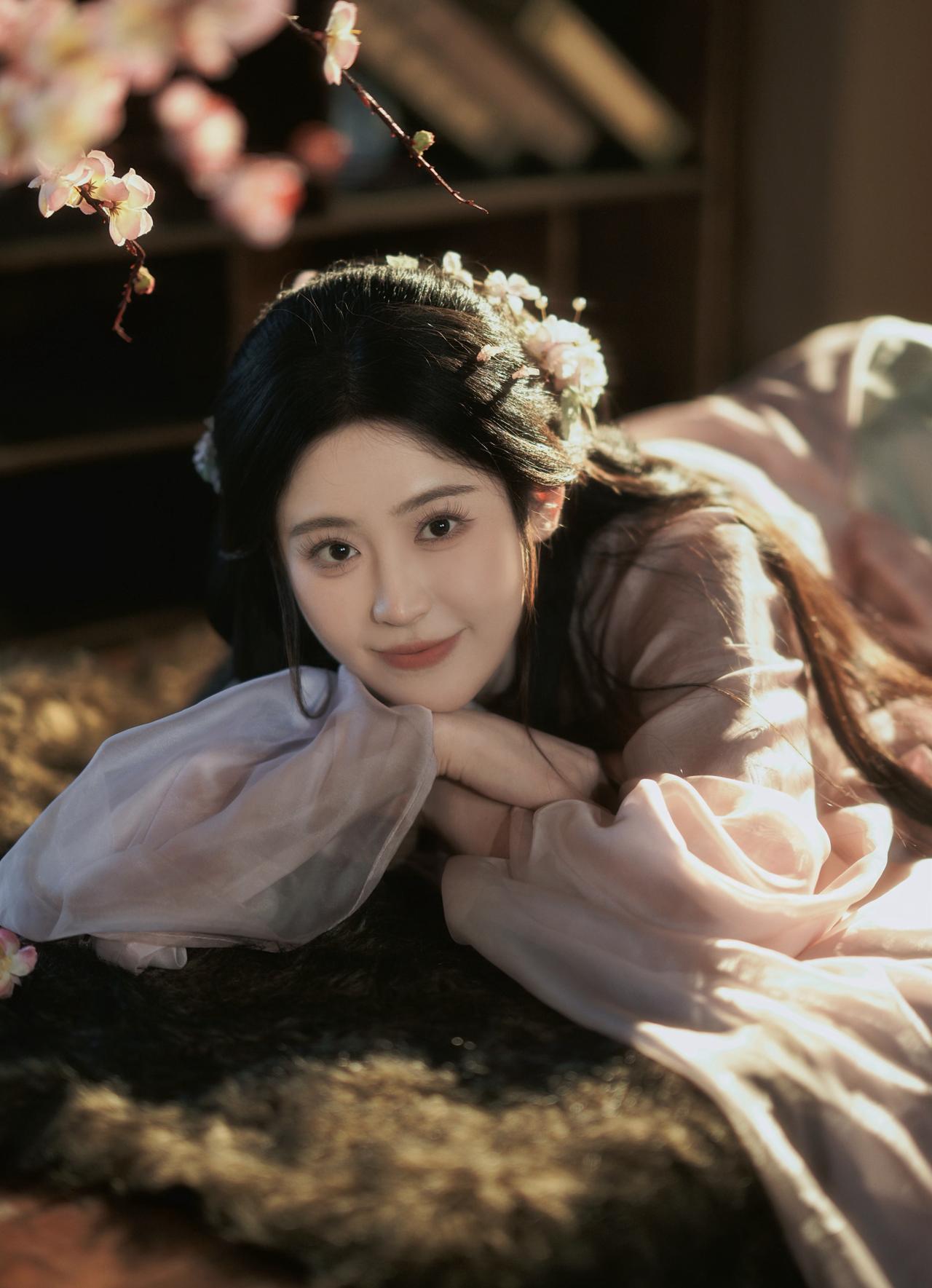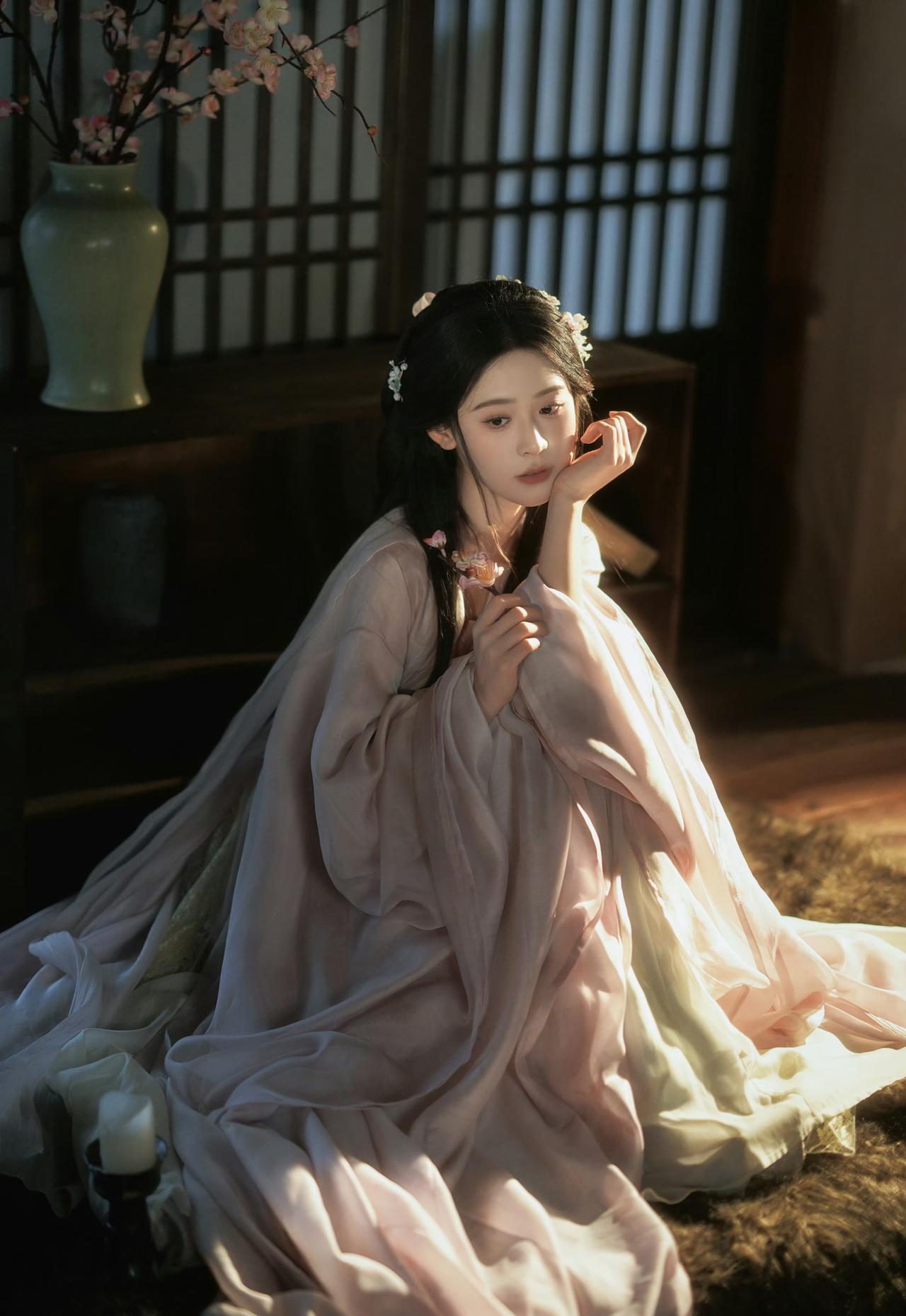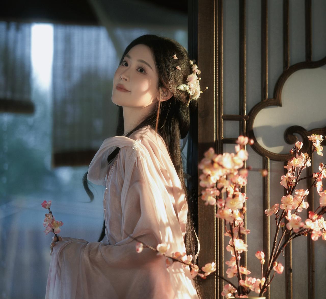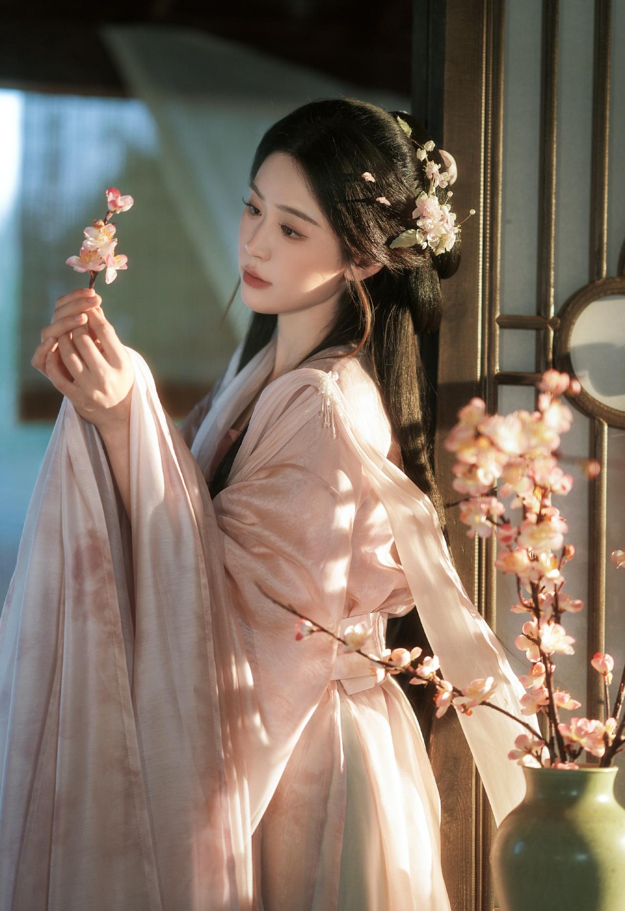 窗棂漏下的柔光,轻笼着一室清浅。她执花静坐,任花香与烛火漫过衣襟,将时光都揉成了温柔的梦。温婉生香