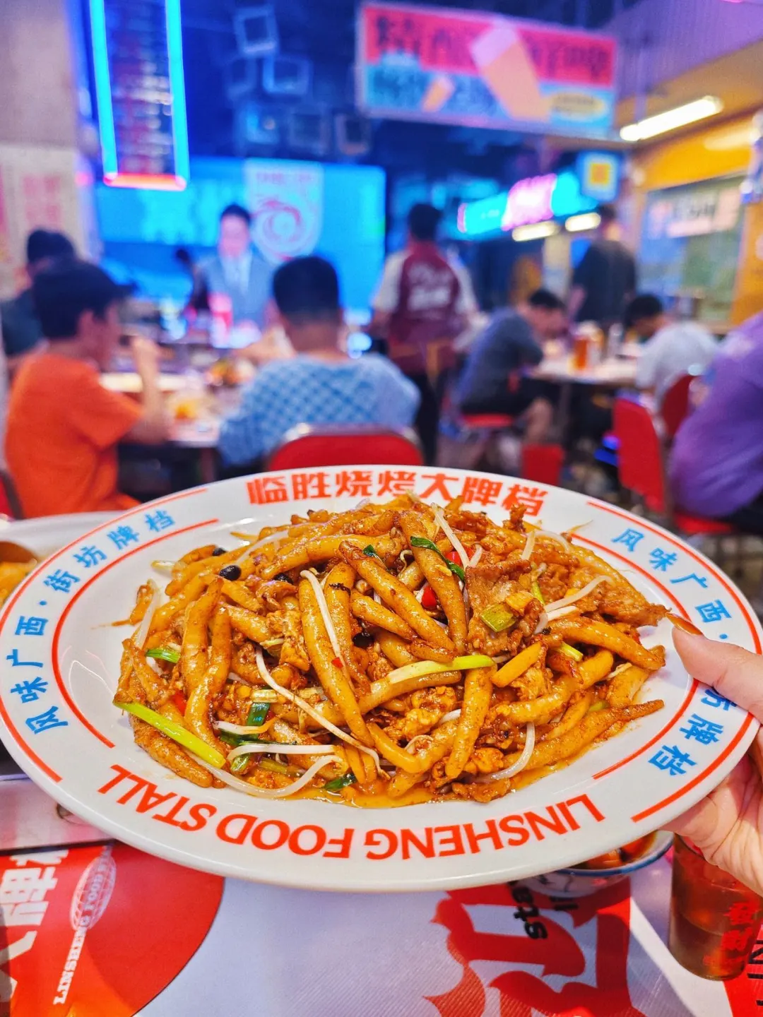 是一条条两头尖尖的粉条,爆炒很有锅气!