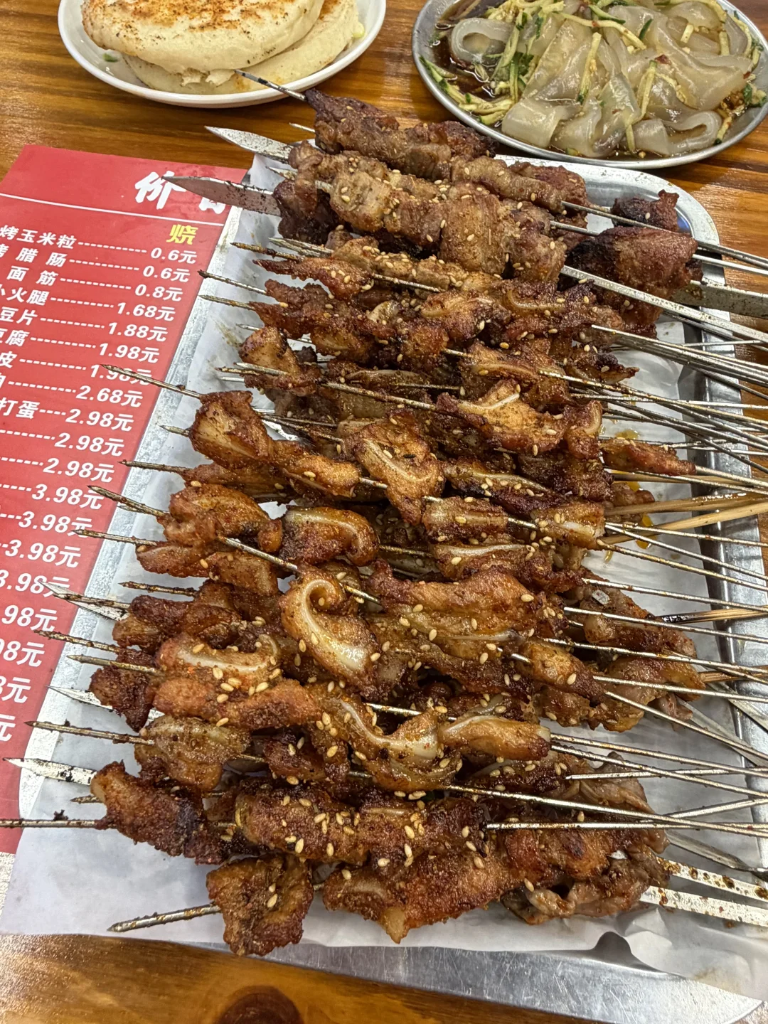 烤开花肠牛蹄筋,牛蹄筋也是店里阿姨每天现的!烤脆骨,也是香脆香脆的!