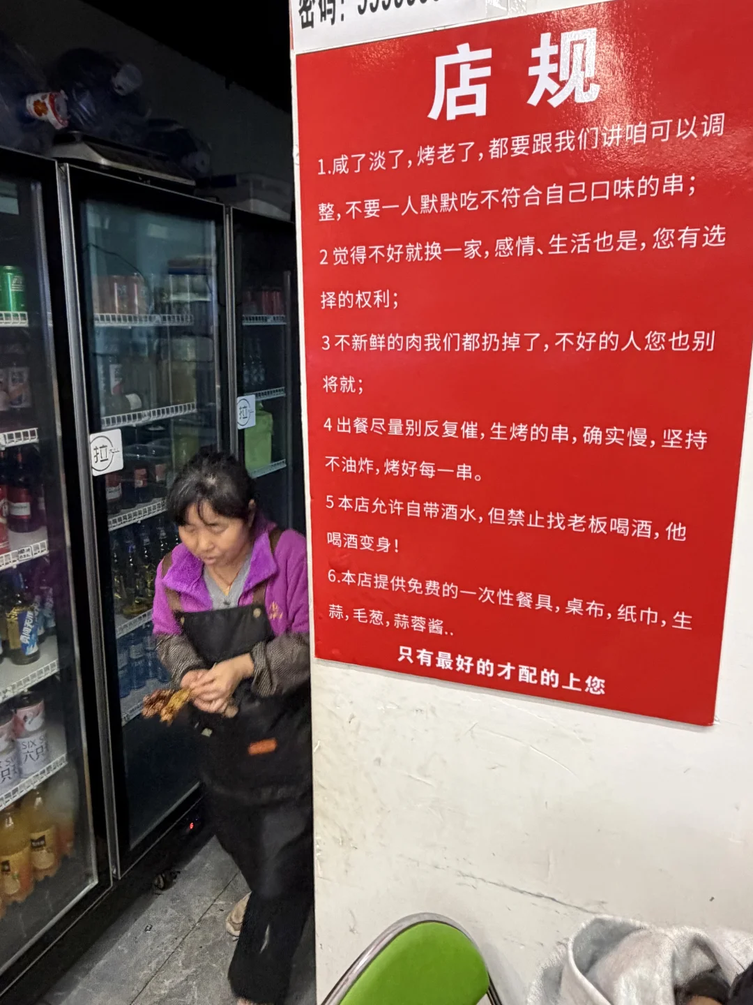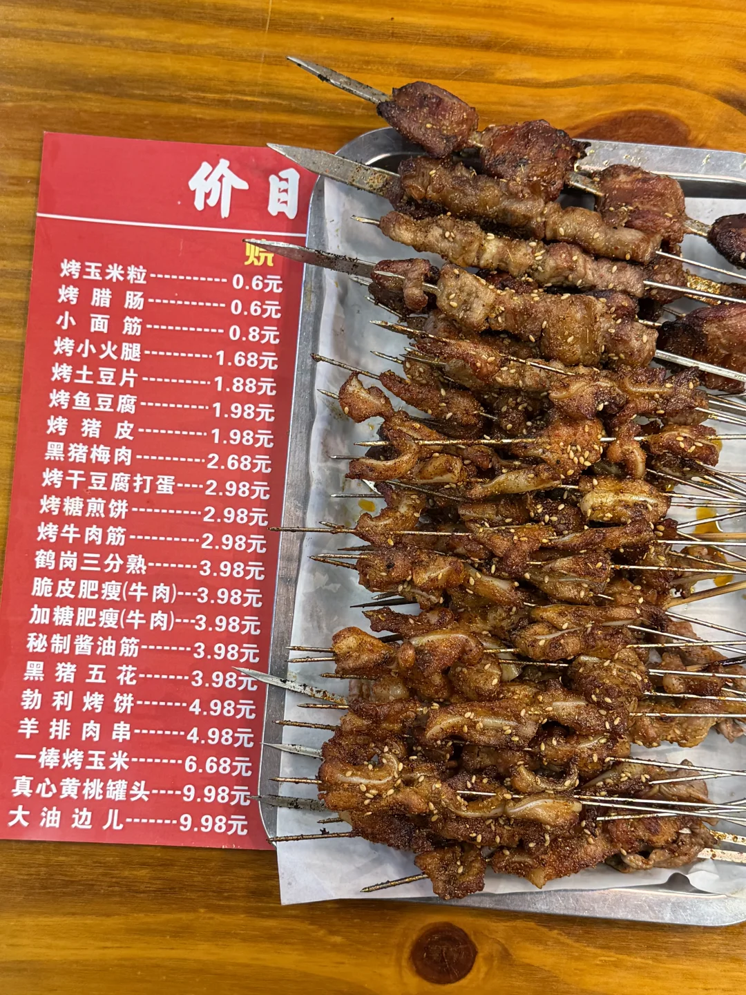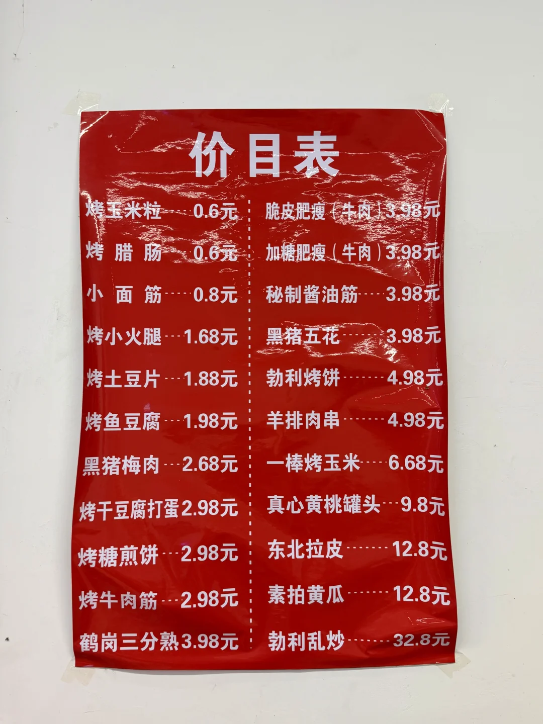 店里贴的价目表让人很安心!来自东北的叔叔阿姨开的,人均几十块,串每天现串的,地道东北味!